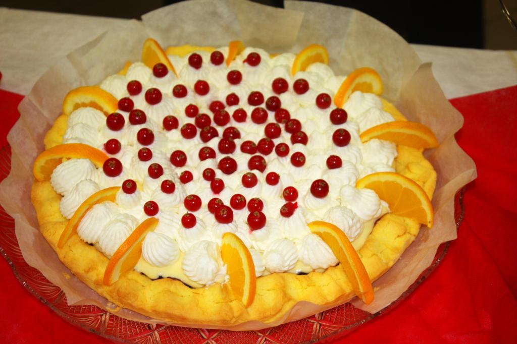 decorazione: ribes, arance, panna montata