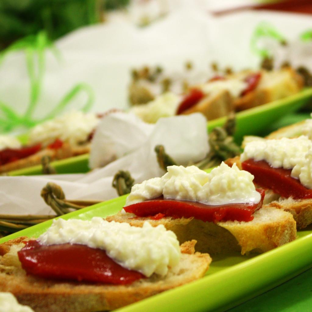Preparazione dei crostini: Tostare il pan carrè e disporlo in un piatto mettere qualche foglia di basilico , poi tagliare il pomodoro a quadretti e metterlo sopra e distribuirci la mousse condire con un filo d’olio e aceto balsamico.