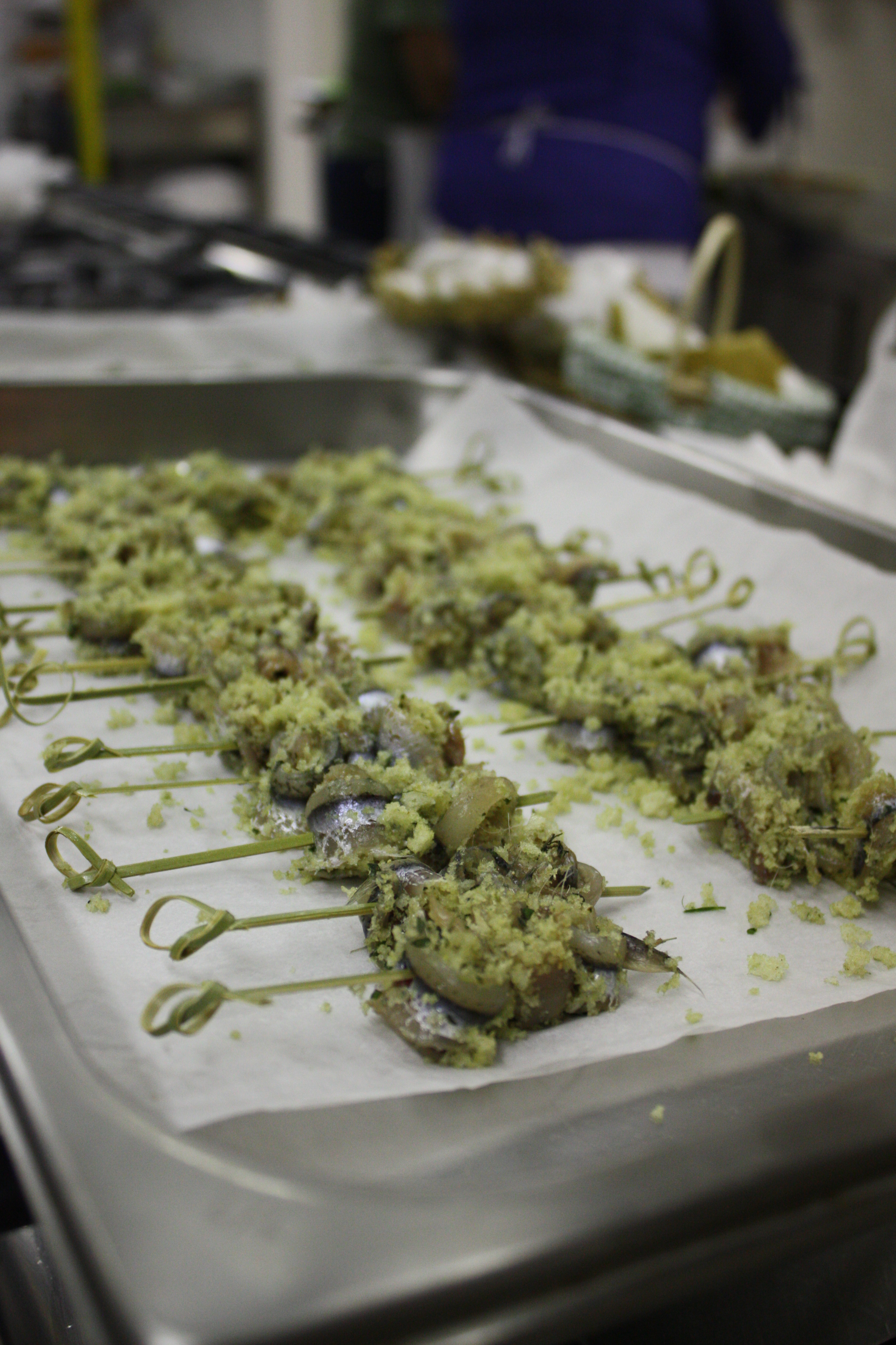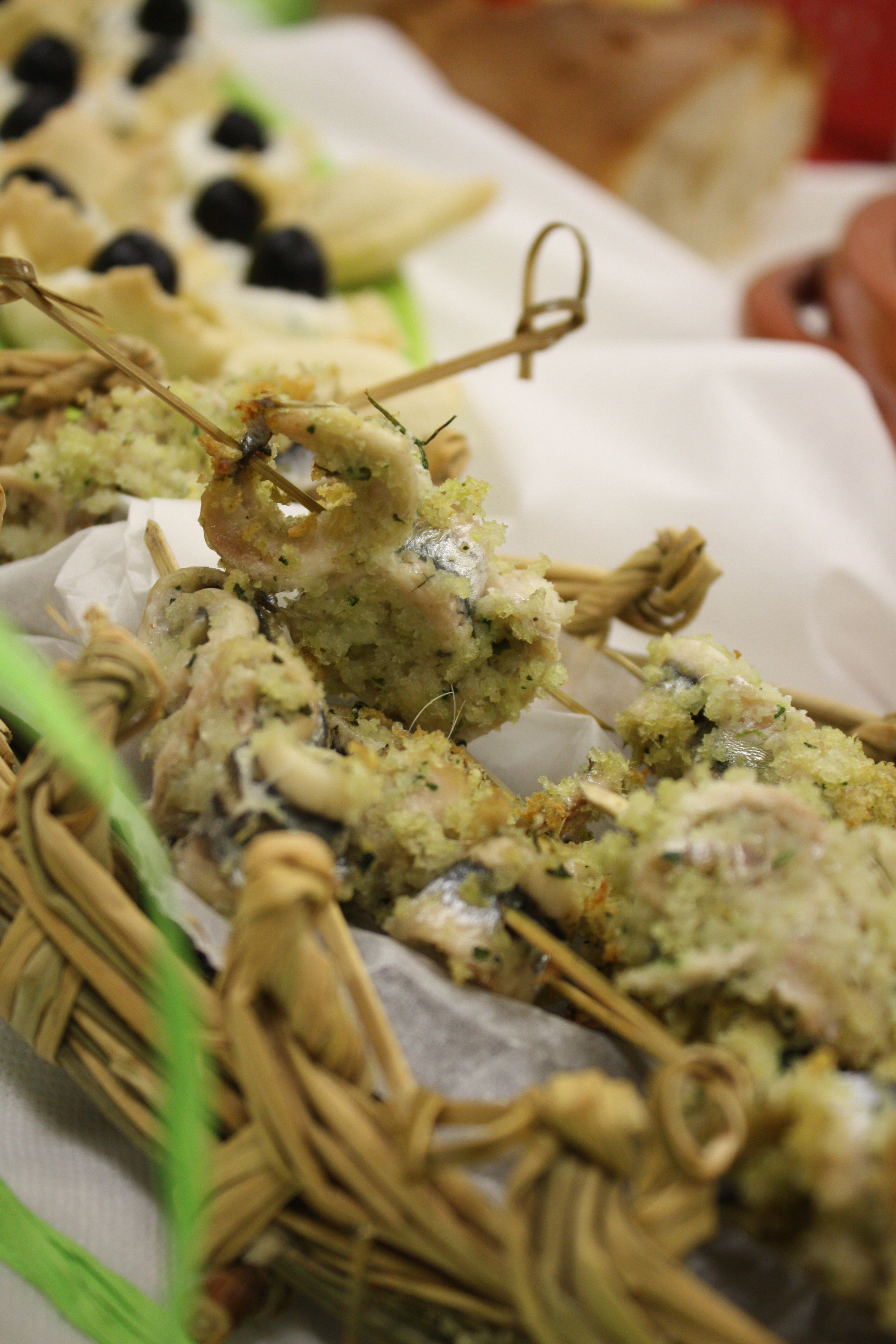 Preparazione: togliere l testa e la lisca alle alici, lavarle ed asciugarle bene. Preparare il pane aromatizzato frullando la mollica con le erbe aromatiche e la buccia del lime sale, pepe disporre le alici su un piano e cospargerci sopra il pane, arrotolarle e fermarle con uno stecchino. In una padella ben calda mettere poco olio e lo spicchio d’aglio, gli involtini e cuocere per pochi minuti. In alternativa cuocere al forno, come nella foto, a 200 °C per 15 minuti .