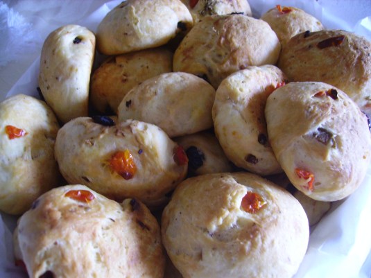 3. tagliare a pezzi piccoli le olive, il basilico, i pomodorini sodi togliere i semi e tagliarli  a pezzi piccoli; unirli all’impasto aiutandovi con un po’ di farina se è necessario poi fare delle piccole palline (grandi come una pallina da ping pong) e lascrare levitare ancora 1 ora.