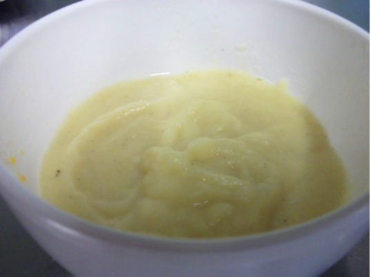 PROCEDIMENTO: lavare e spinare attentamente il pesce, cuocerlo nella vaporiera oppure mettere il pesce tra due piatti e porli sopra un pentolino con acqua bollente e cuocere circa 20 /30 minuti. sgocciolarlo dall’acqua di cottura e mettere il pesciolino in una tazza o un contenitore alto, aggiungere la patata lessata e un po’ di brodo vegetale. Omogenizzare tutti gli ingredienti con il frullatore ad immersione facendo cadere a filo l’olio d’oliva.