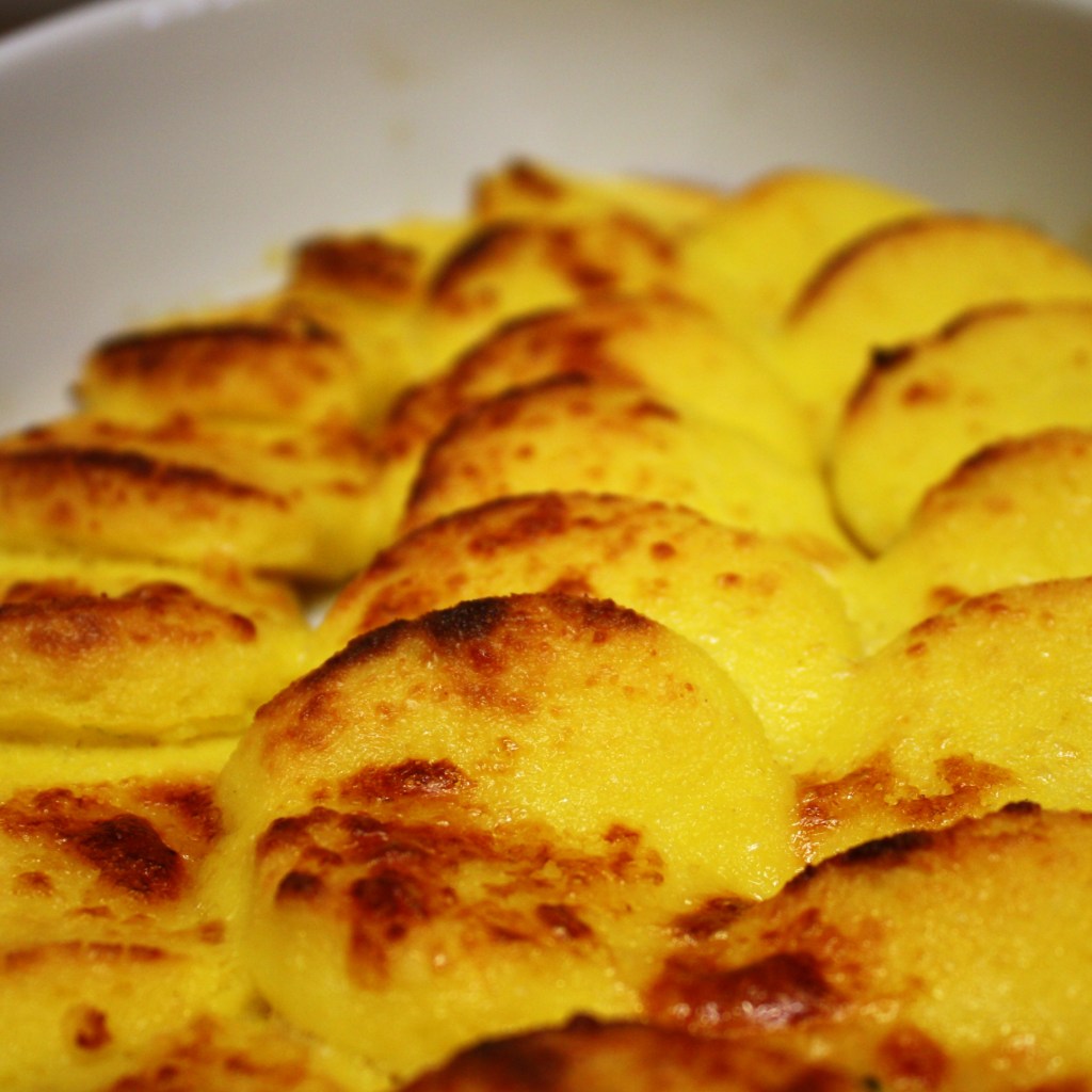 Procedimento : portare ad ebollizione il latte, salare,mettere metà del burro; quando bolle versare a pioggia il semolino, mescolare fino a che il semolino rassodi e lasciare riposare 10 minuti intanto a parte sbattere l’uovo con il parmigiano, un pizzico di sale e la noce moscata e versarlo nell’impasto e mescolare fino a che i due composti si sono unificati. Quando è ancora tiepido versarlo in una teglia da forno oppure su un tagliere in silicone ( o su carta forno) unto con olio d’oliva in uno strato alto 1 cm e ritagliarne i dischetti, con un coppapasta o un bicchiere, che si disporranno su una teglia unta. Cospargere di fiocchetti di burro e grana. Gratinare in forno a 180° C ventilato per 30 minuti circa.