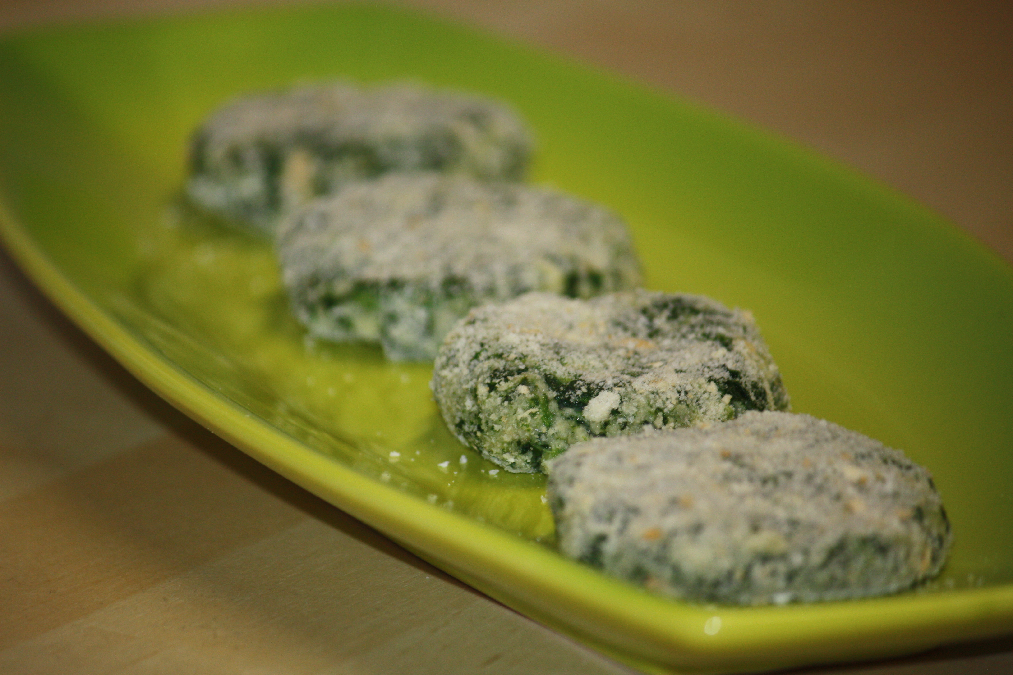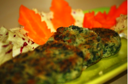 • quando si sono raffreddati tutti gli ingredienti in una ciotola amalgamare agli spinaci la besciamella, l’uovo, il grana e il pangrattato; aggiustare di sale e pepe a piacere poi fare delle piccole cotolettine e passarle nel pane.