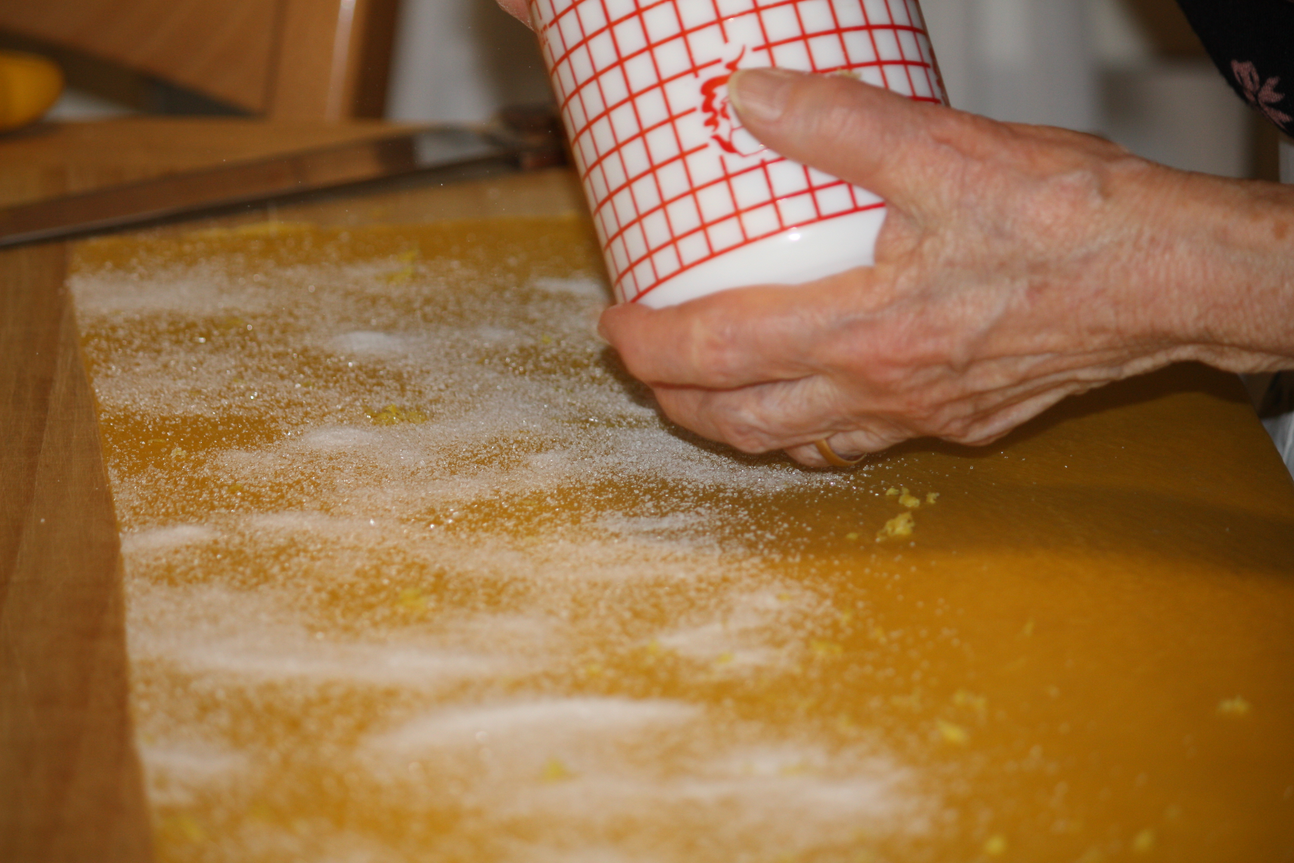 …..a questo punto distribuire sulla pasta il limone grattugiato e lo zucchero