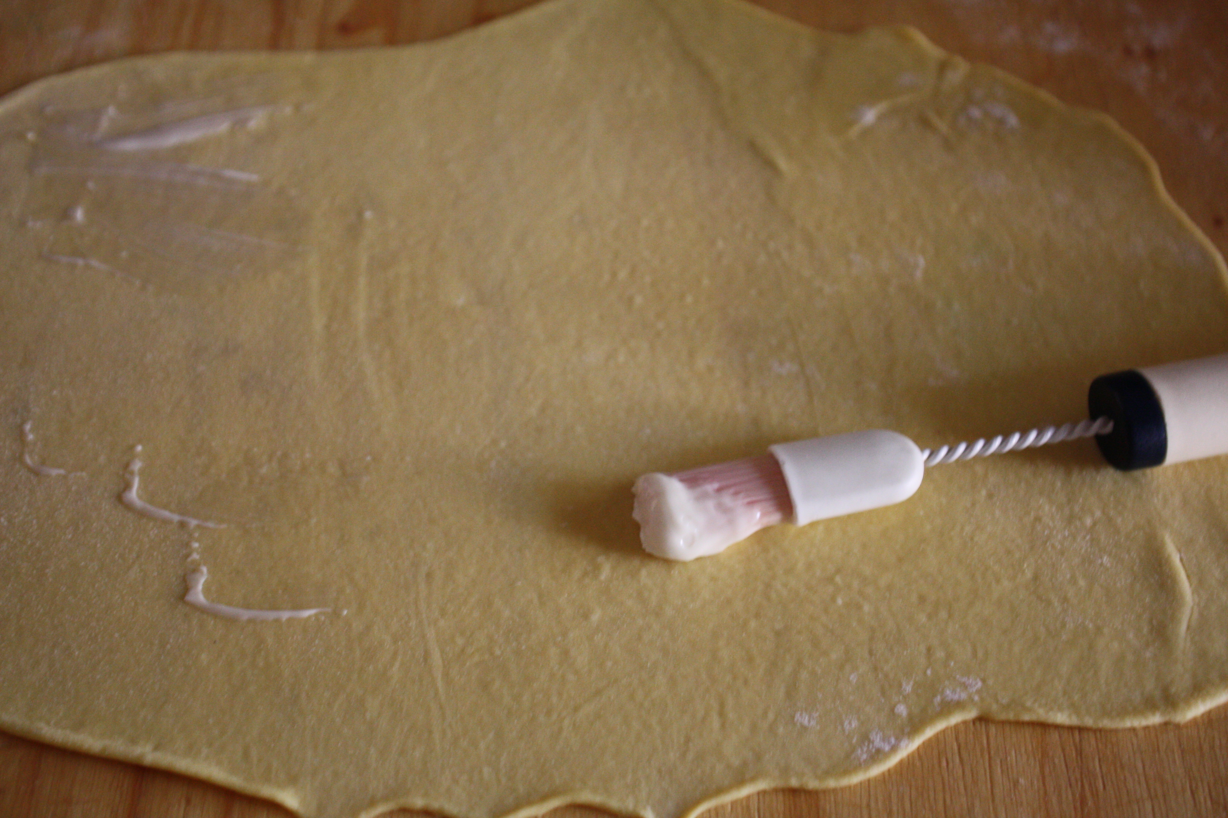 Quando la pasta è rilassata con un coltello, tagliare la pasta in quadrati io ne ho fatti 9 ,poi ritagliare la pasta in questo modo.. io ho utilizzato per questo delle forbici