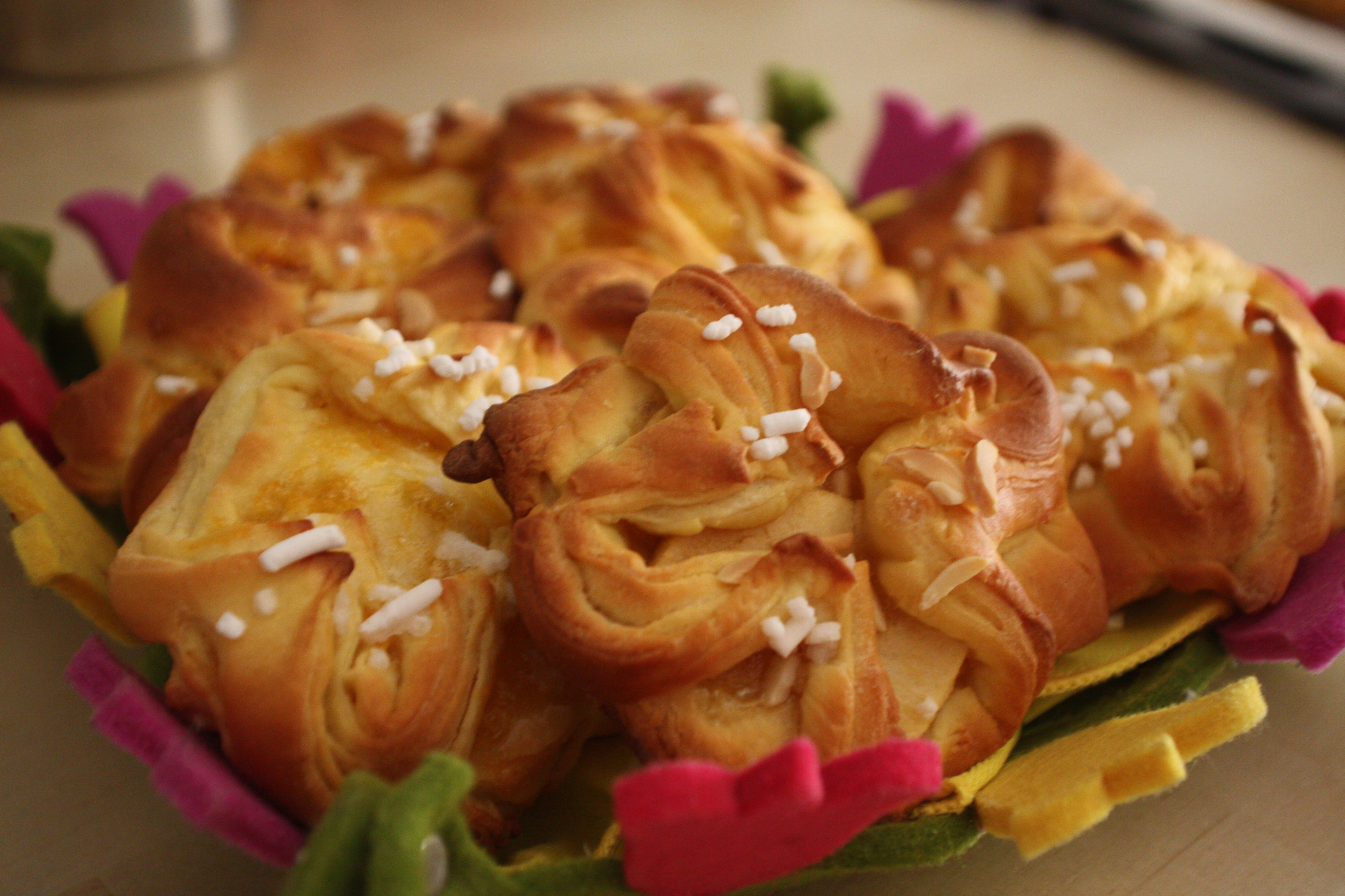far lievitare fino a raddoppio ( circa 30/45 minuti), pennellare con latte e cospargere al centro con zucchero in granella.. io ho aggiunto anche mandorle a pezzetti
