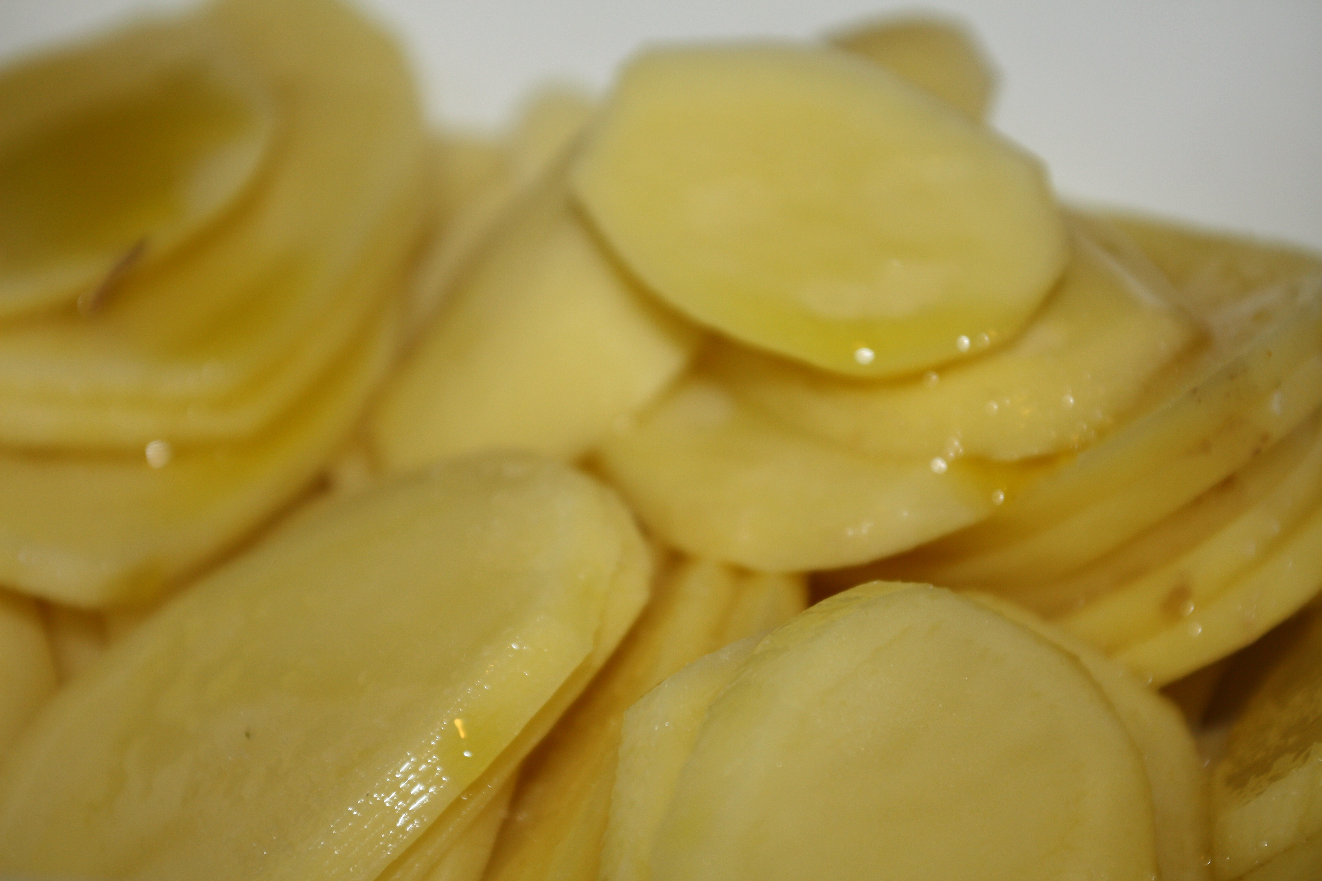 patate 600 gr spellate e tagliate a fette ( io ho usato l’affettatrice)