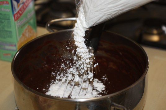In un sacchetto pesare insieme zucchero, farina , fecola , lievito e scuotere;