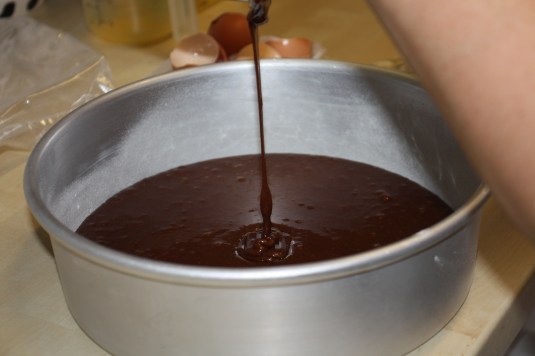 imburrare ed infarinare una teglia diametro 26 cm. e versare il composto