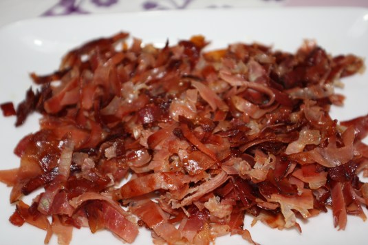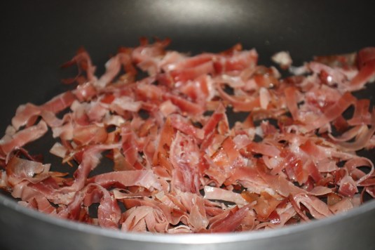 tagliare lo speck a striscioline e saltarlo in padella con poco olio (20 gr ) e renderlo croccante