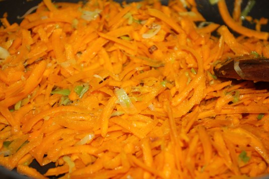 tagliare la zucca a julienne (con l’apposito attrezzo o a mano) e aggiungerla al porro