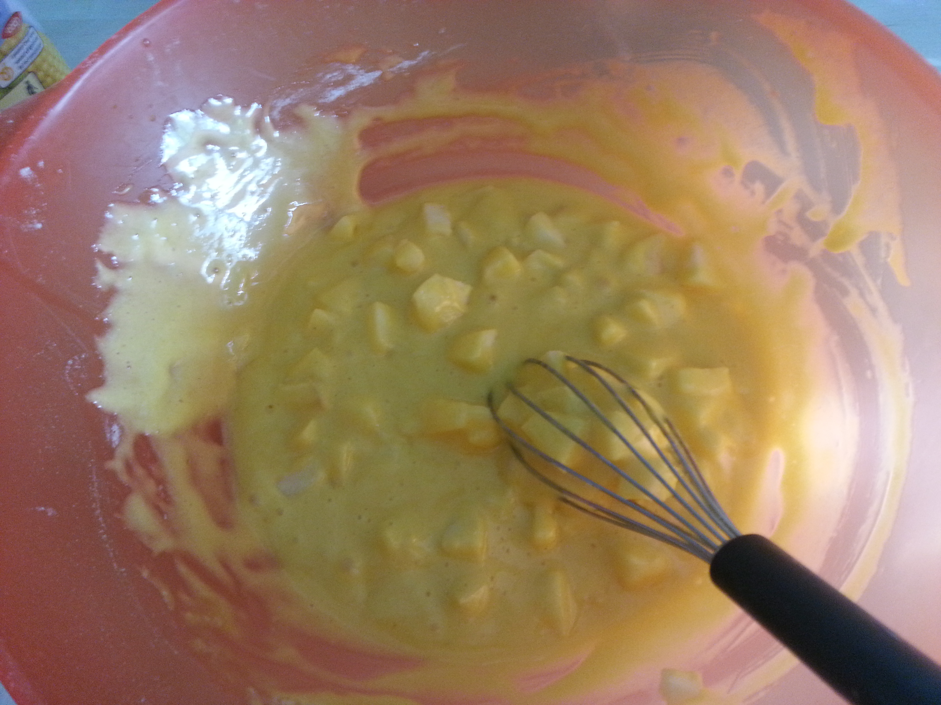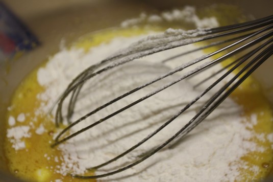 aggiungere 5 cucchiai di zucchero e di farina …. mescolare bene