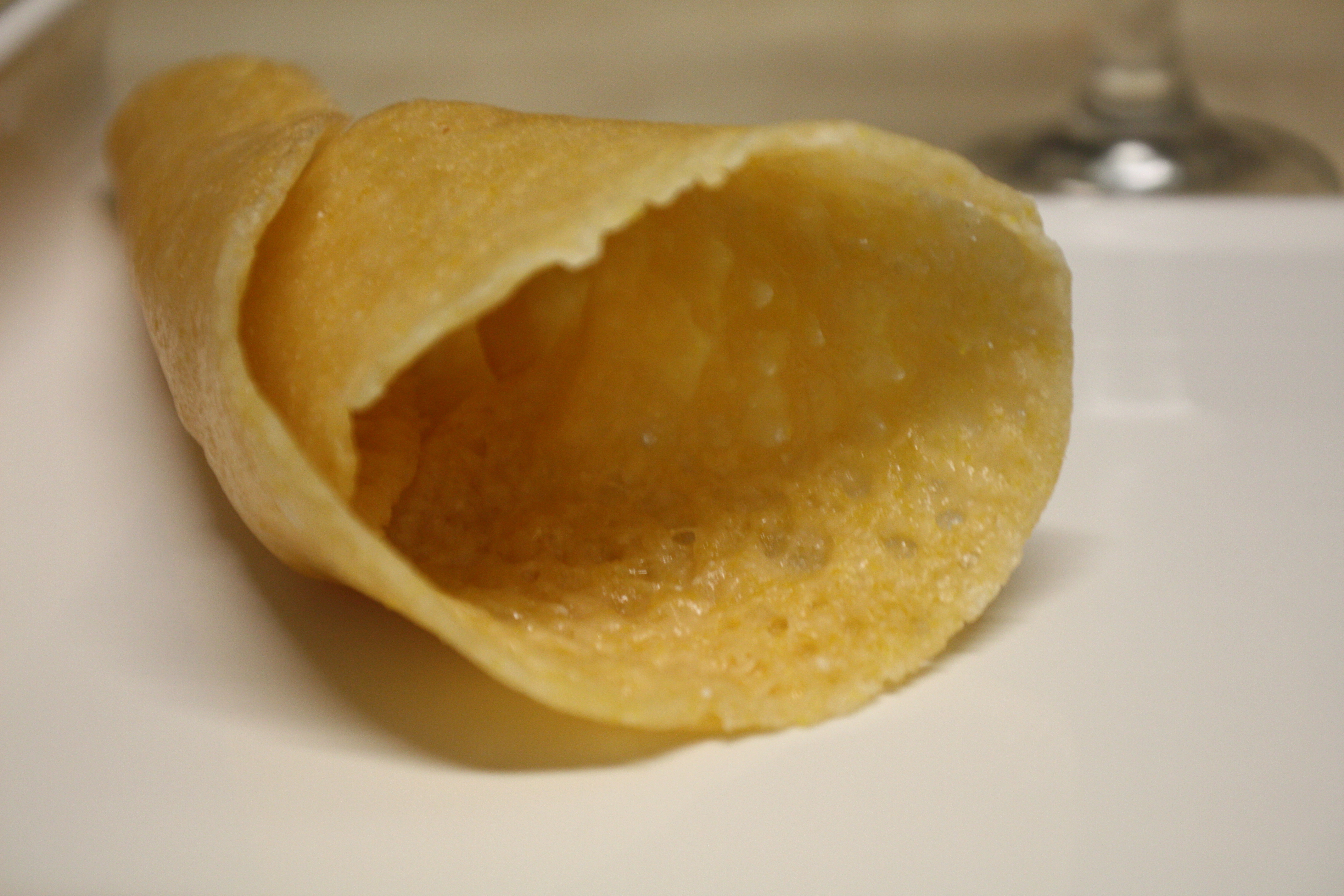 arrotolare la cialda a cono e farla raffreddare nel bicchiere