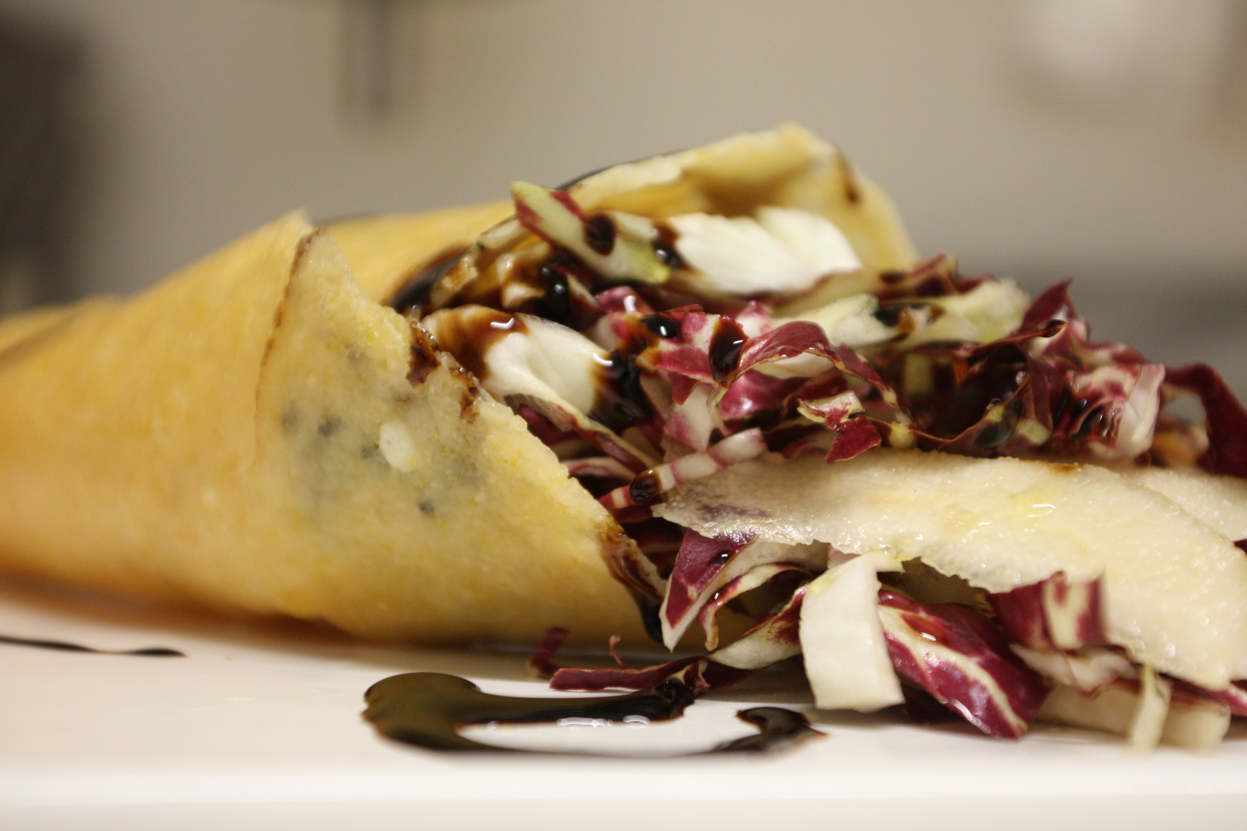 io l’ho servita con radicchio rosso e pere condita con un filo d’olio e aceto balsamico