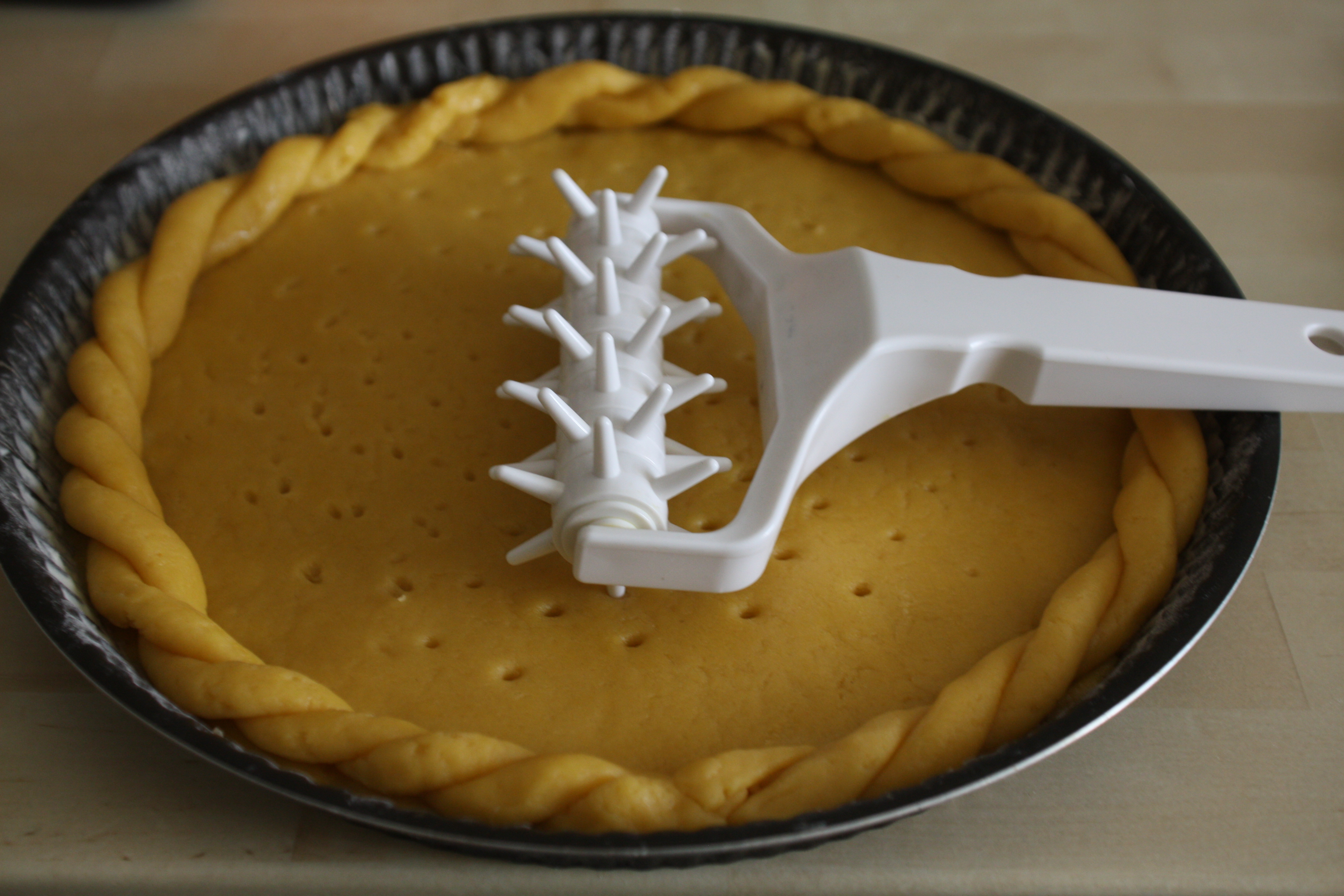 Stendere la pasta in una teglia, creare un bordo e bucherellate la base…