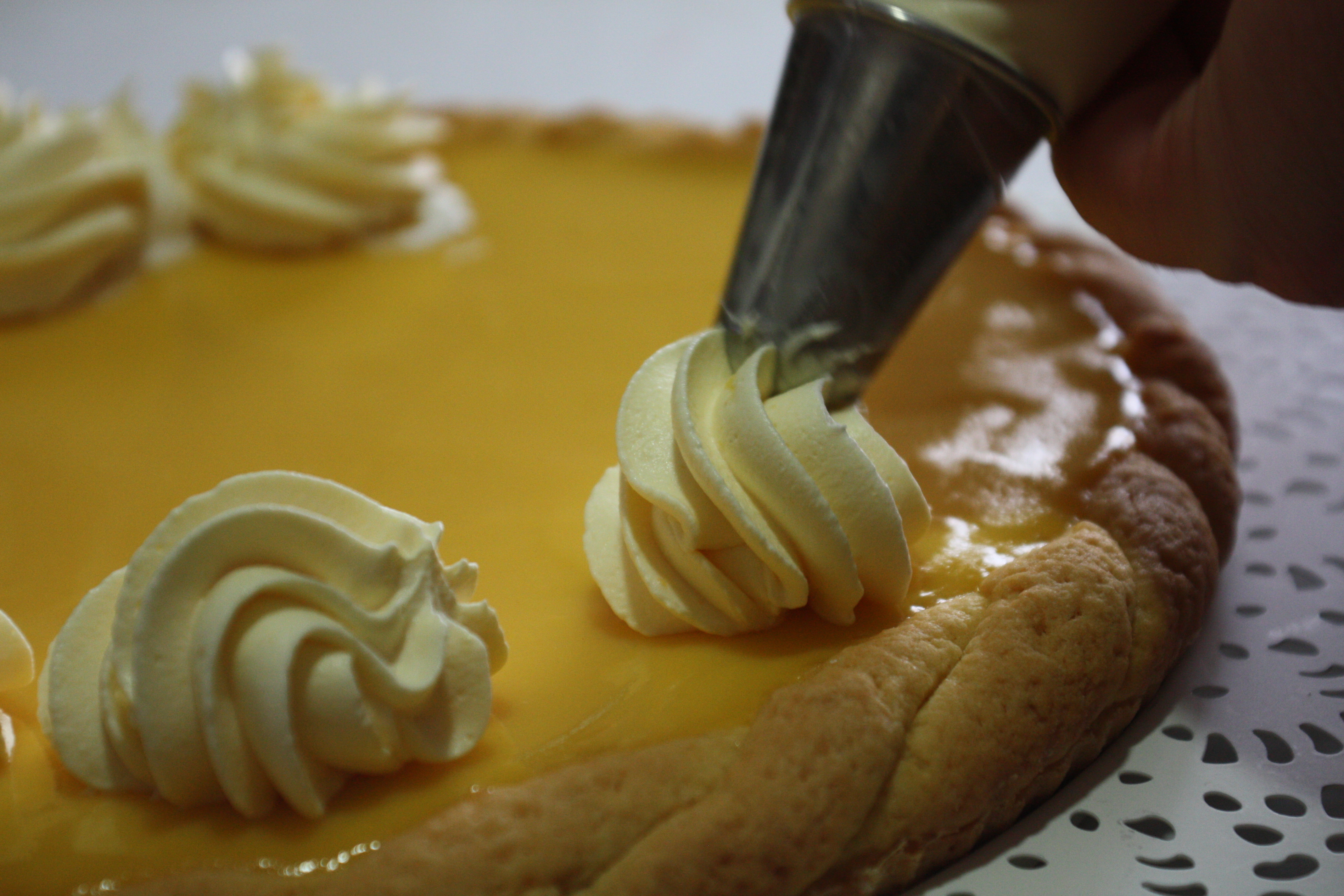 mettere la panna in una sacca a poche e decorare la torta