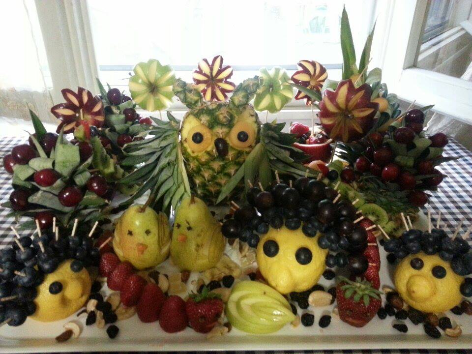 Grazie a Monica, mi sono cimentata  in sculture  di frutta. Ho fatto un po’ di ripasso sui libri preziosi del maestro Capitani… un po’ di ricerche ed ecco il risultato fatto in collaborazione con alcune allieve STRAORDINARIE!!!