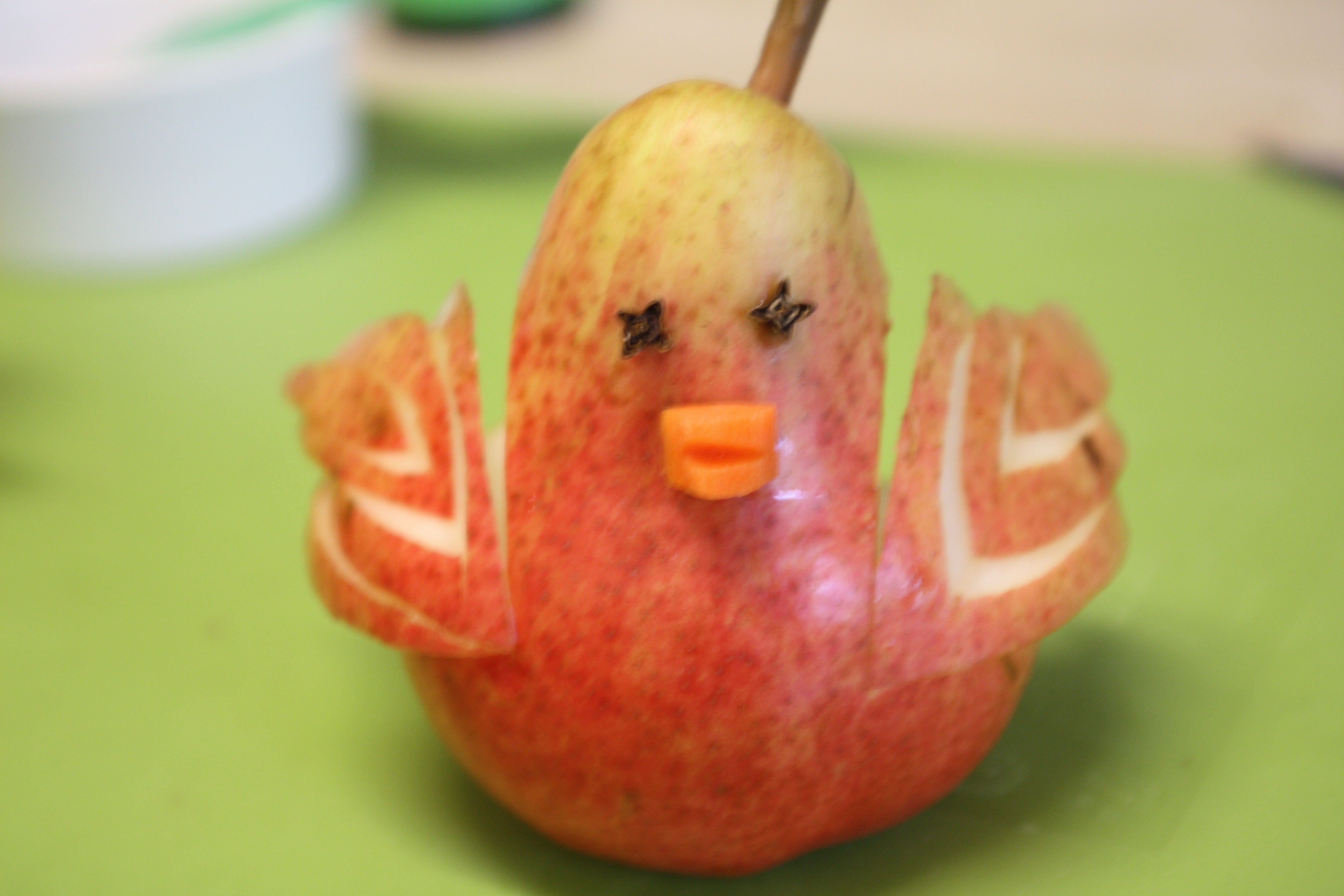 Divertendoci con altre forme e frutti abbiamo creato questi simpatici uccellini.