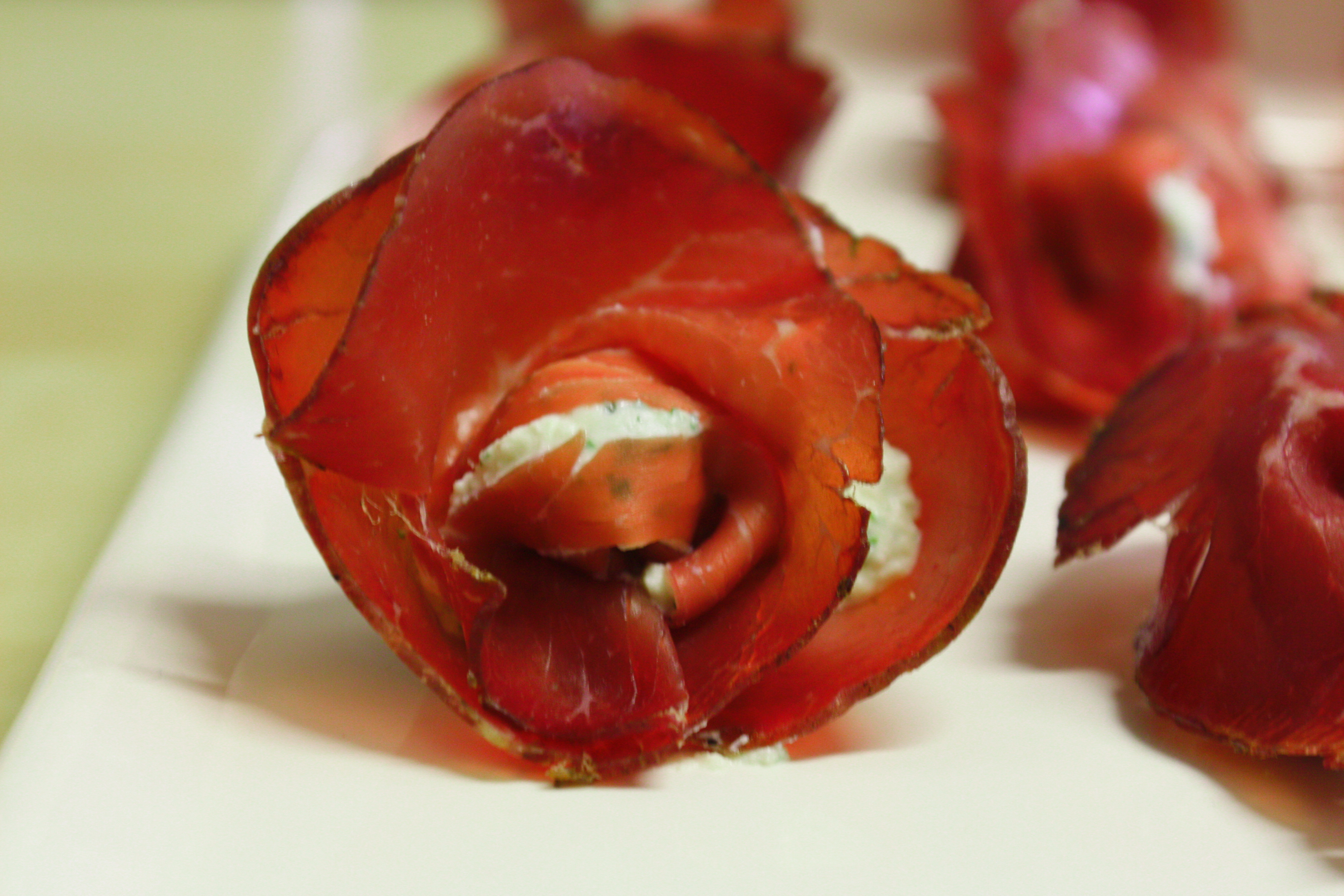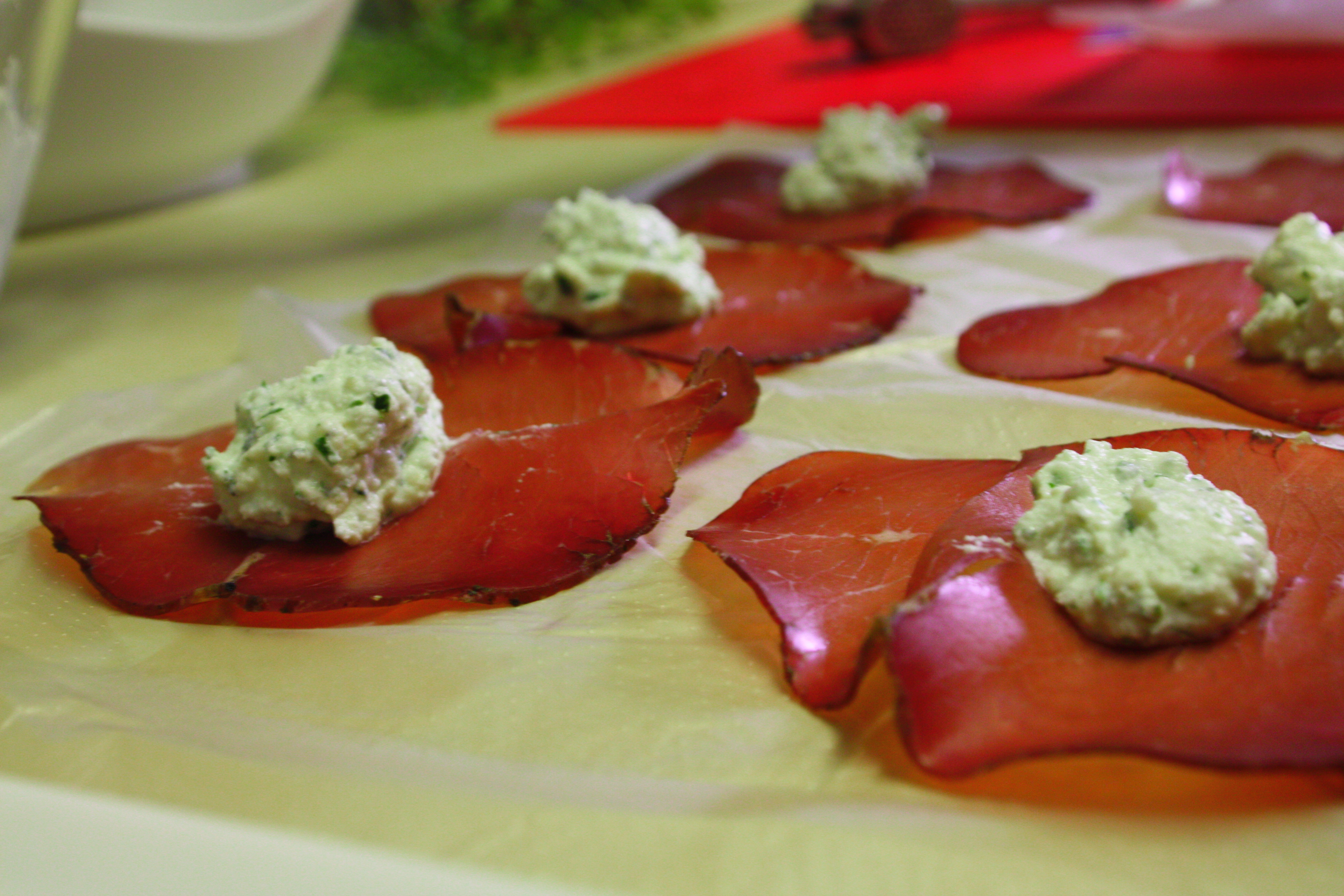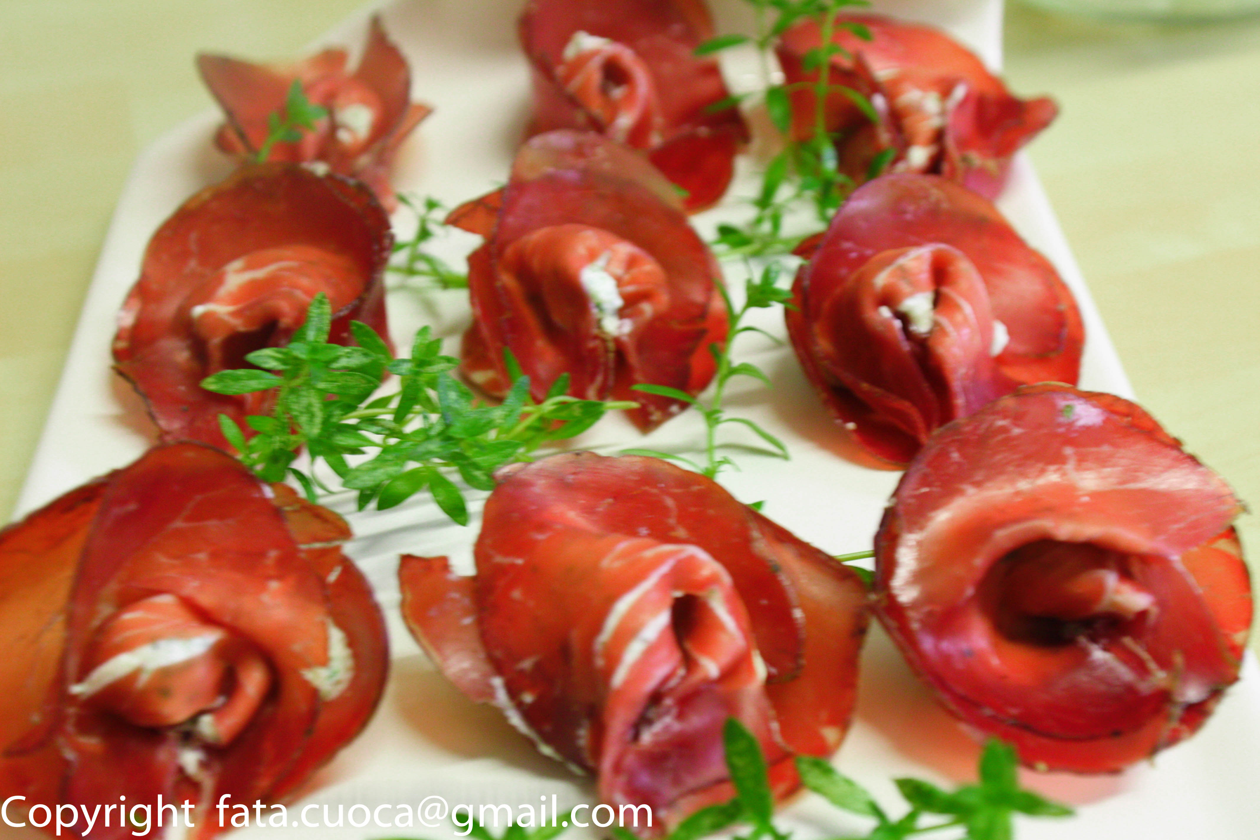 stendere le fette di bresaola e mettere al centro mettere un cucchiaino di ricotta profumata