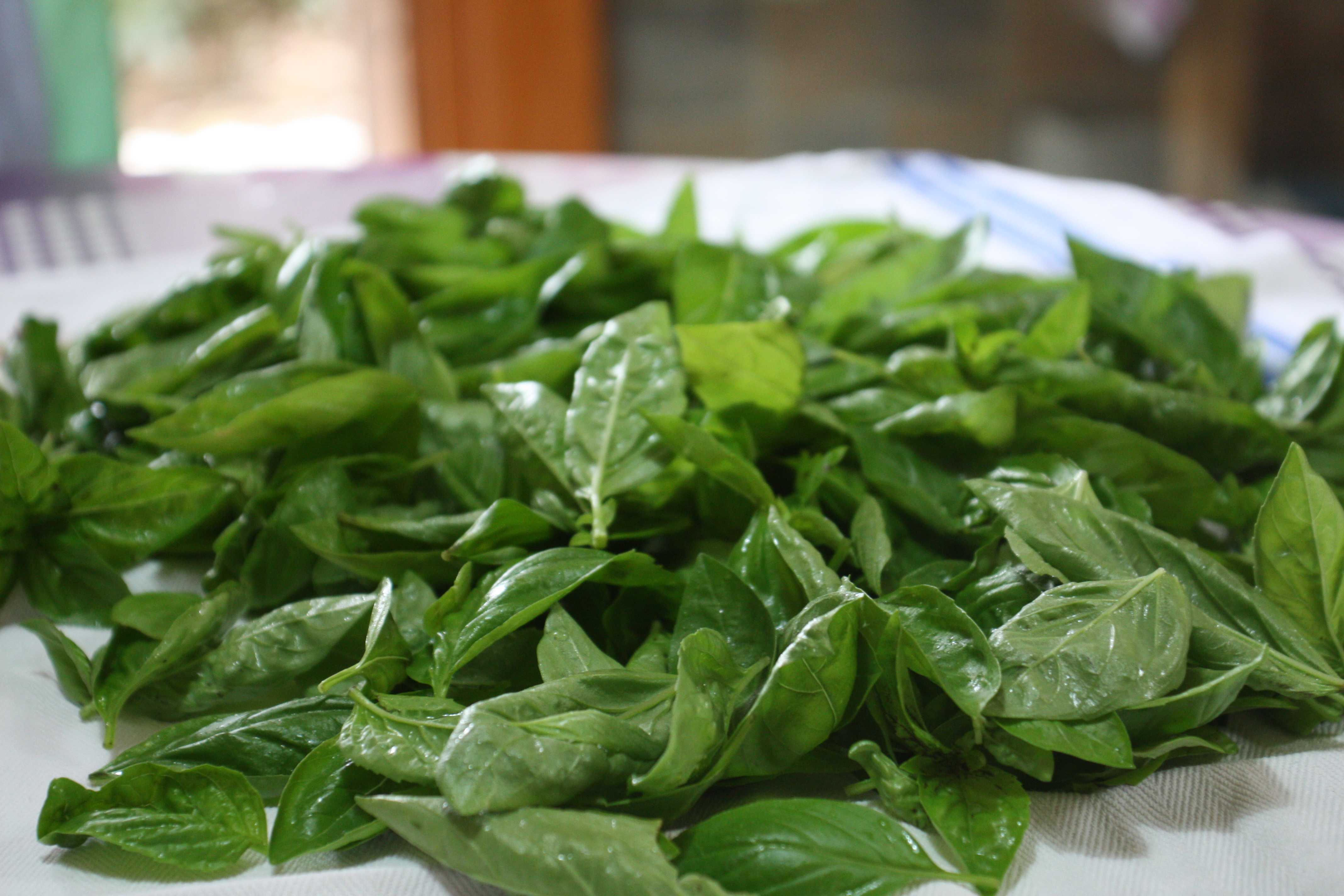 raccogliere il basilico, lavarlo e asciugarlo