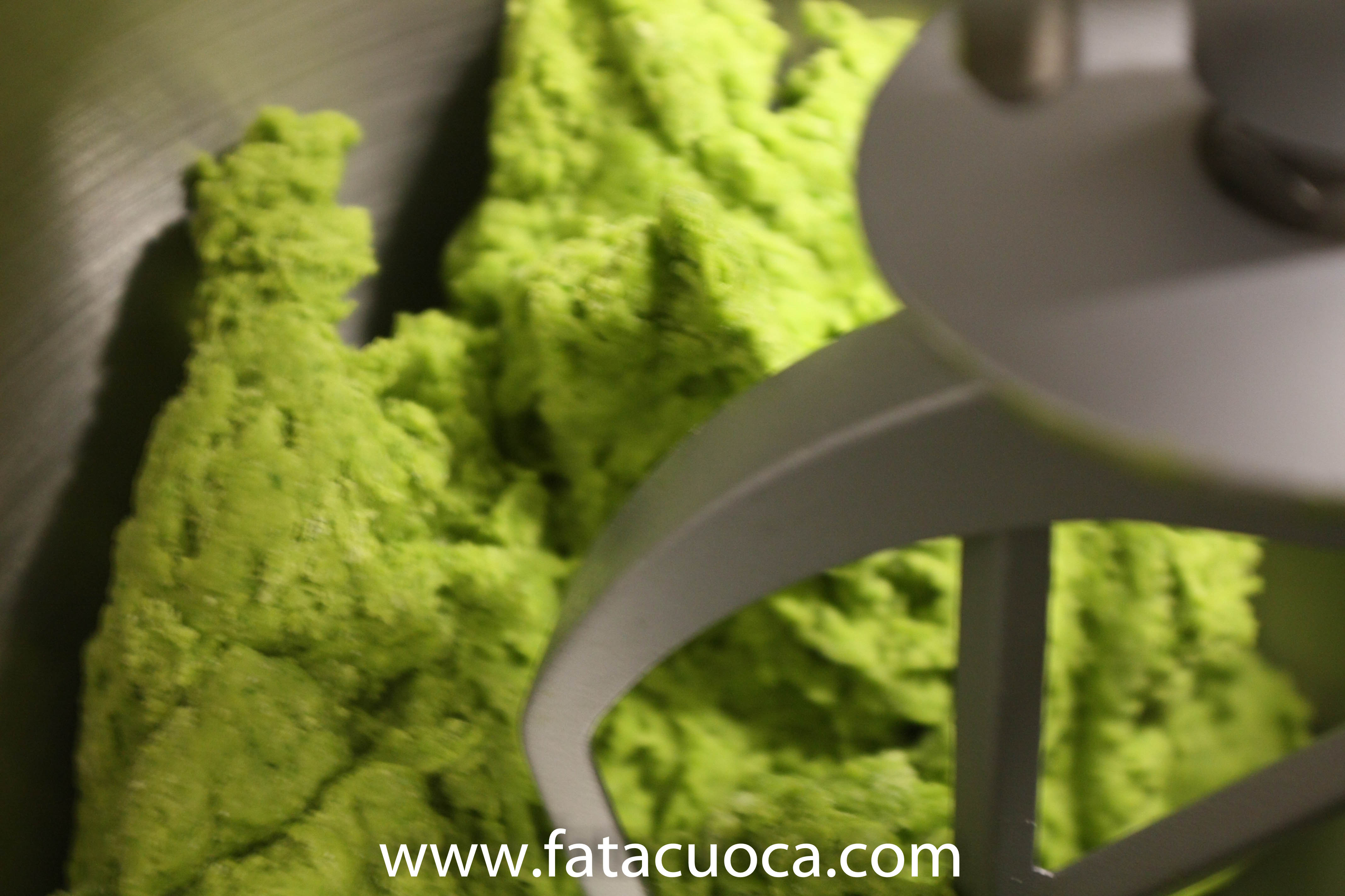 frullare con il minipimer gli spinaci e le uova ed impastare o a mano oppure nella planetaria: la farina aggiungendo un cucchiaio di olio di oliva extravergine.