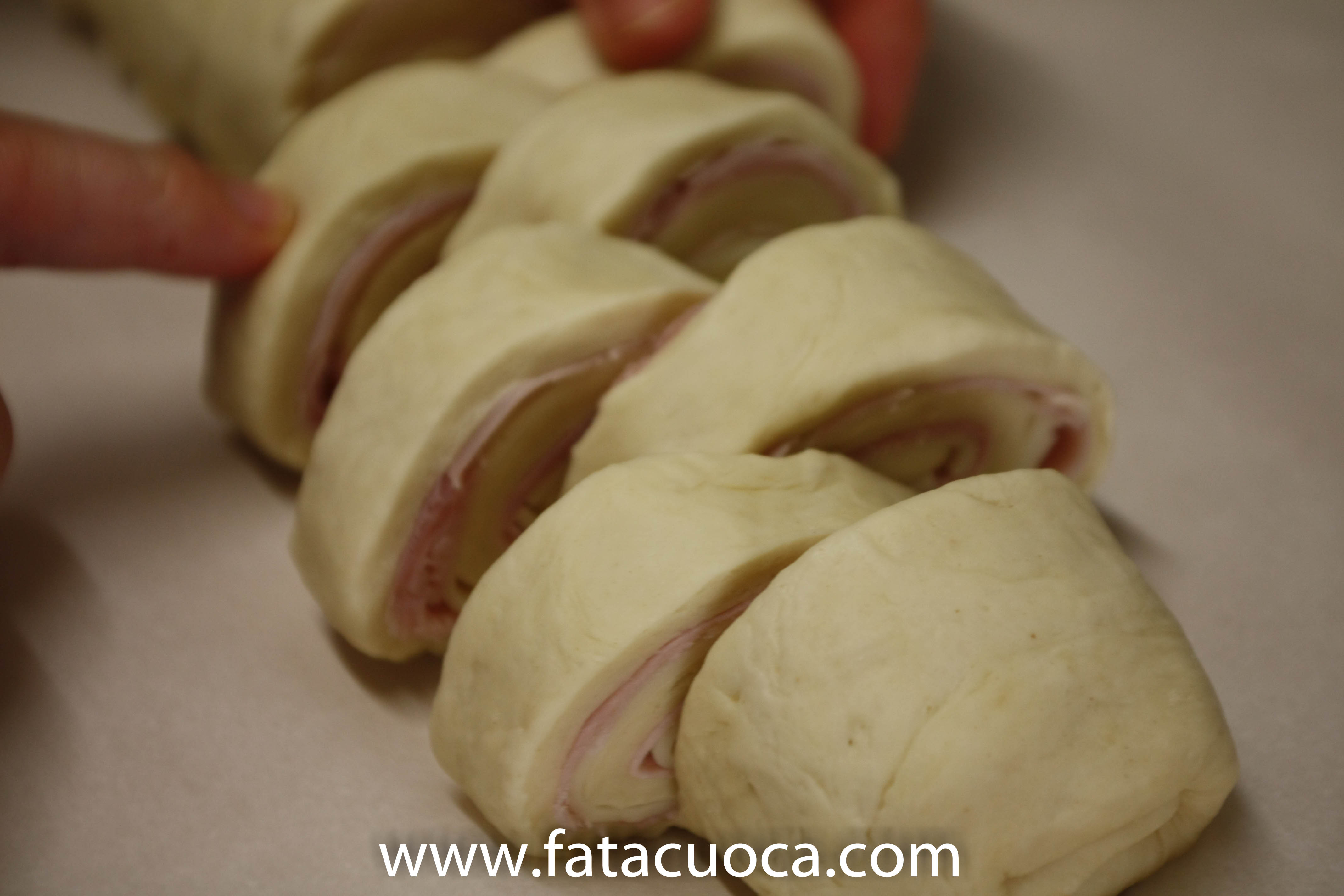 tagliare con un coltello a distanza circa di 2 cm. delle fette ma non fino in fondo