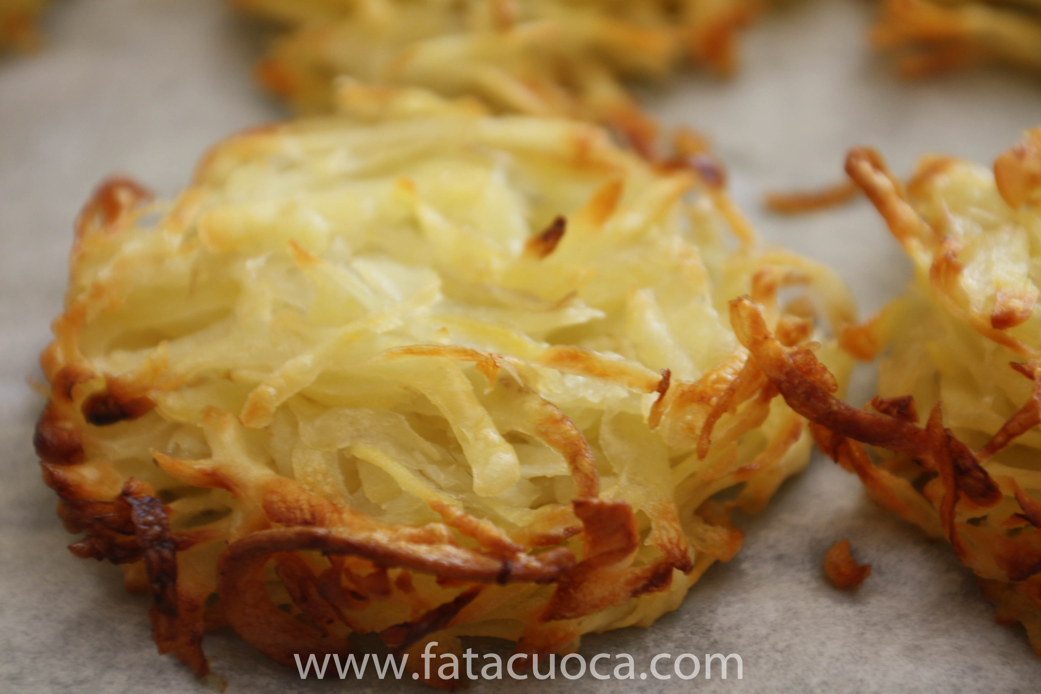 lavare e pelare le patate, con  una grattugia o con il moulinette tagliarle à la julienne,
