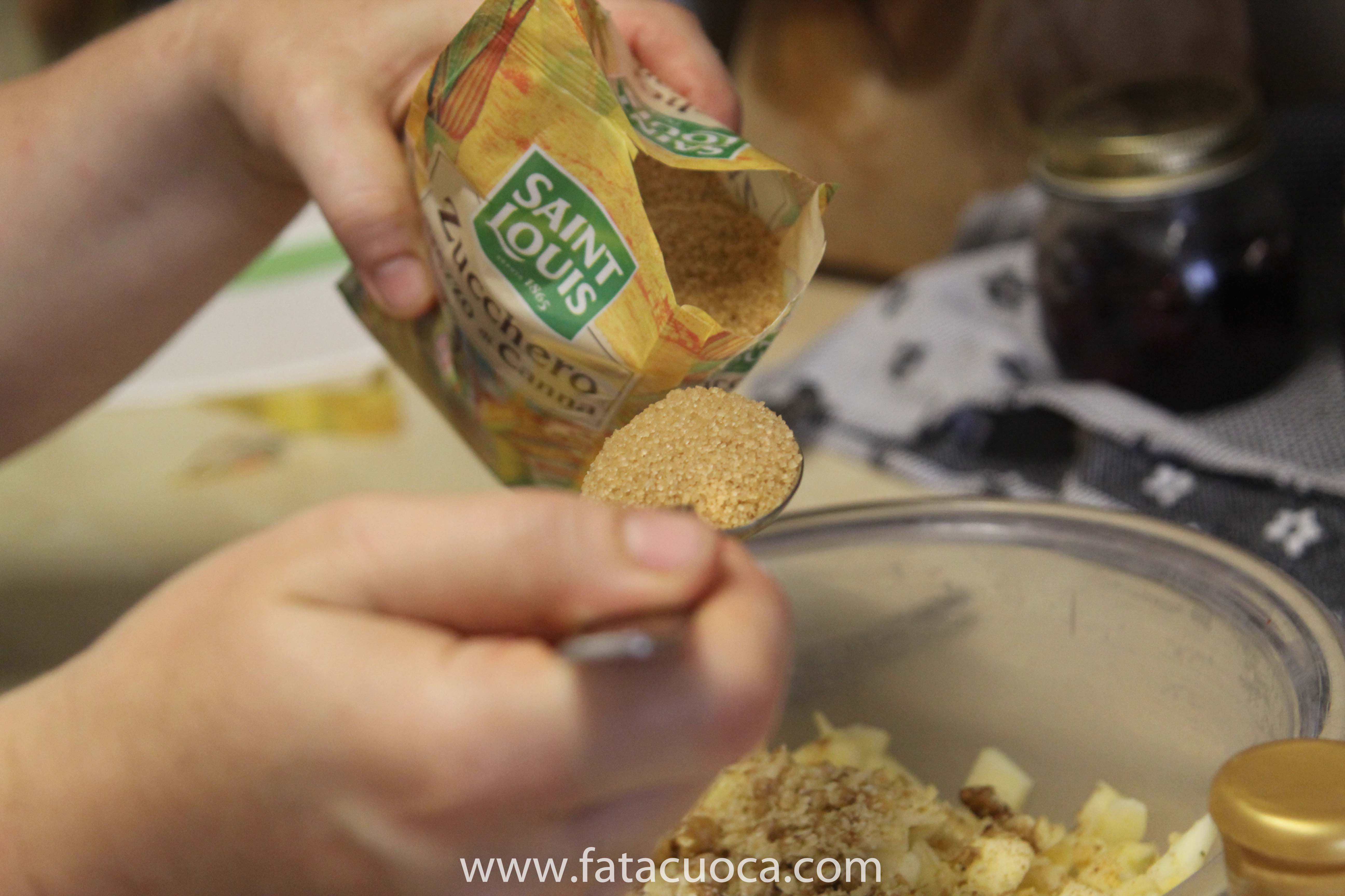 un cucchiaio di zucchero di canna e i 50 g di noci tritate