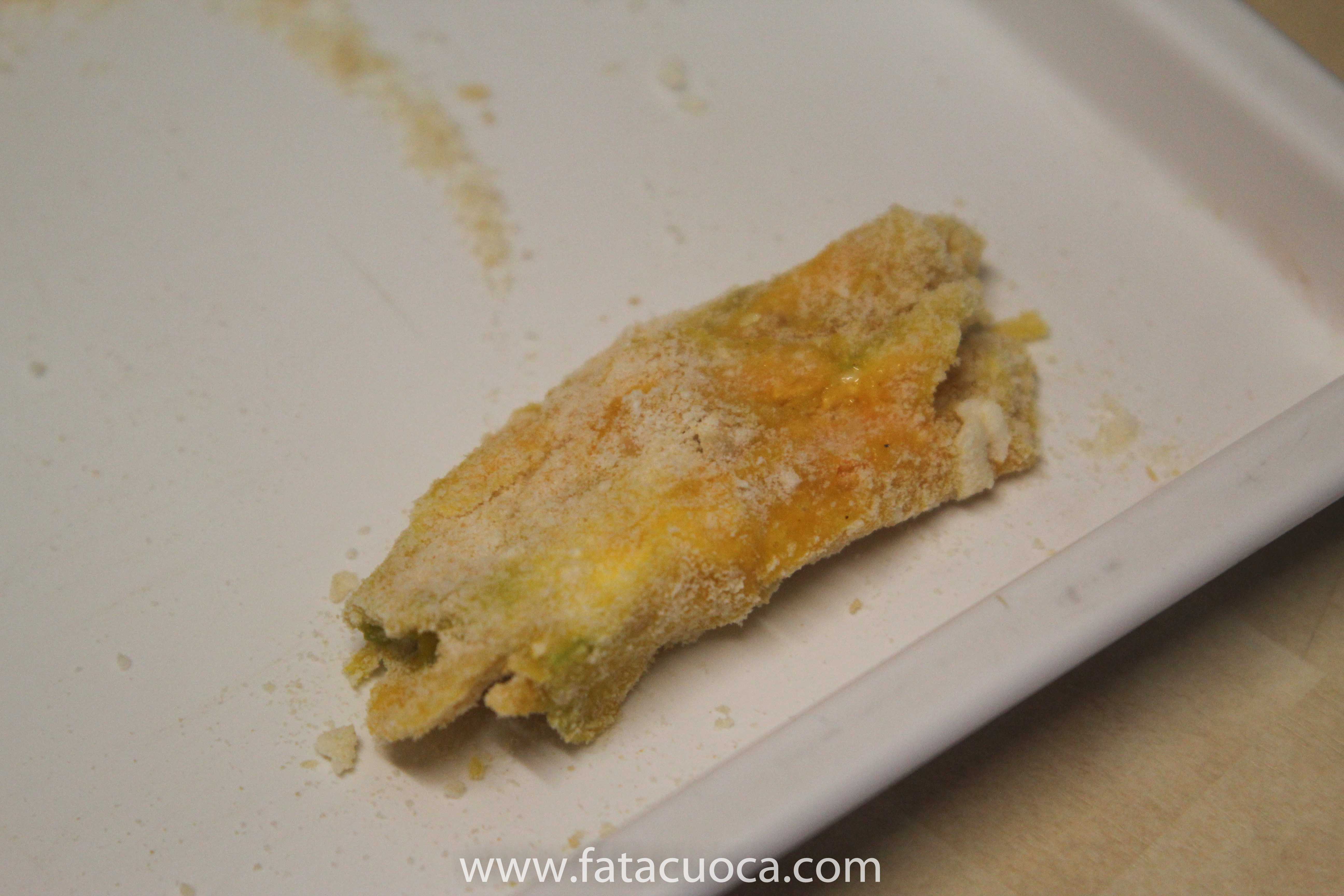 Lavate per bene i fiori, immergete delicatamente i fiori di zucca in acqua fredda poi sgocciolateli e metterli a scolare su di un foglio di Scottex con il quale li tamponerete delicatamente; eliminate il gambo, divaricate leggermente i fiori di zucca con le dita ed estraete i pistilli carnosi posti all’interno e sulla base dei fiori.
