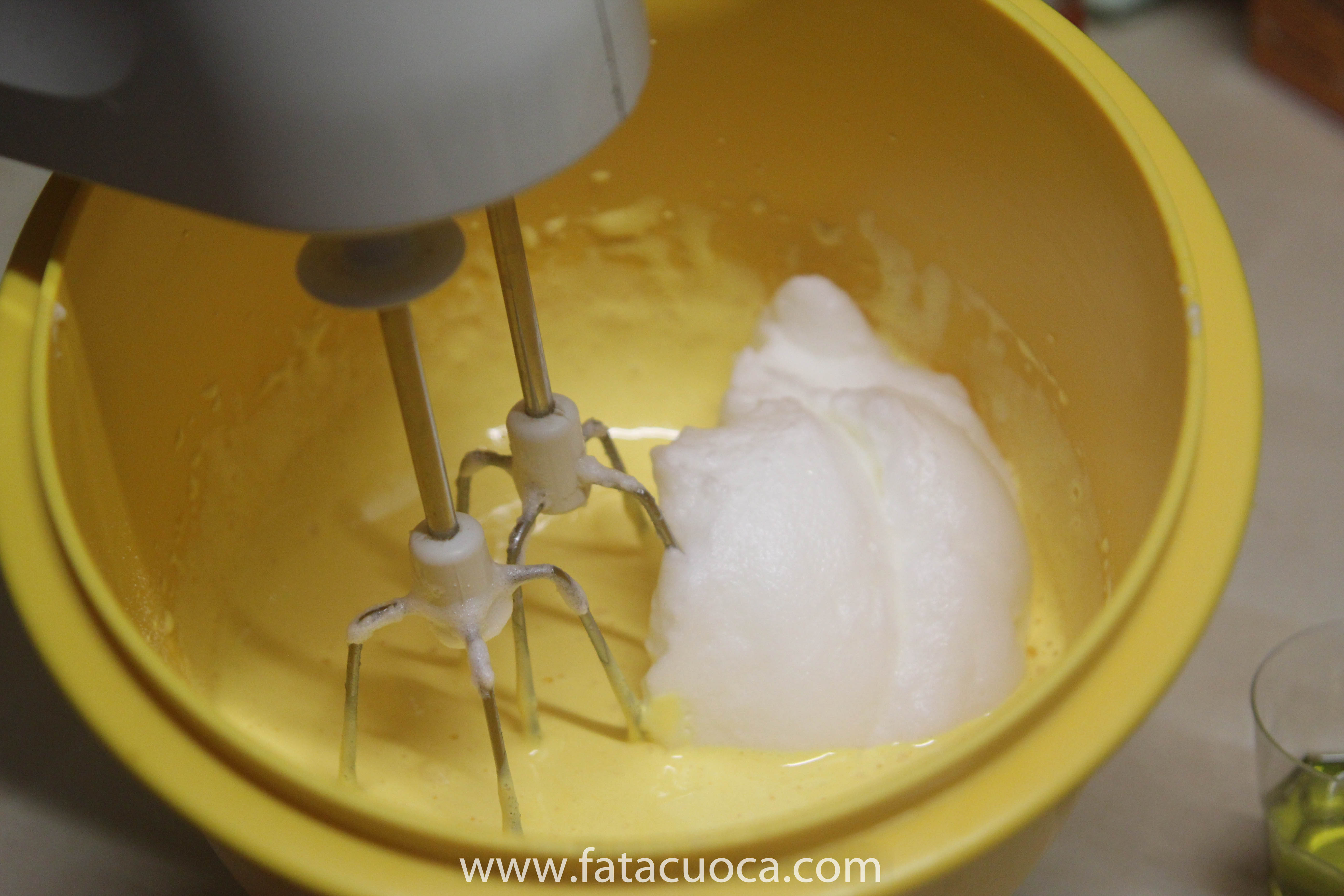 in un’altra ciotola montare i tuorli con lo zucchero aggiungere gli albumi