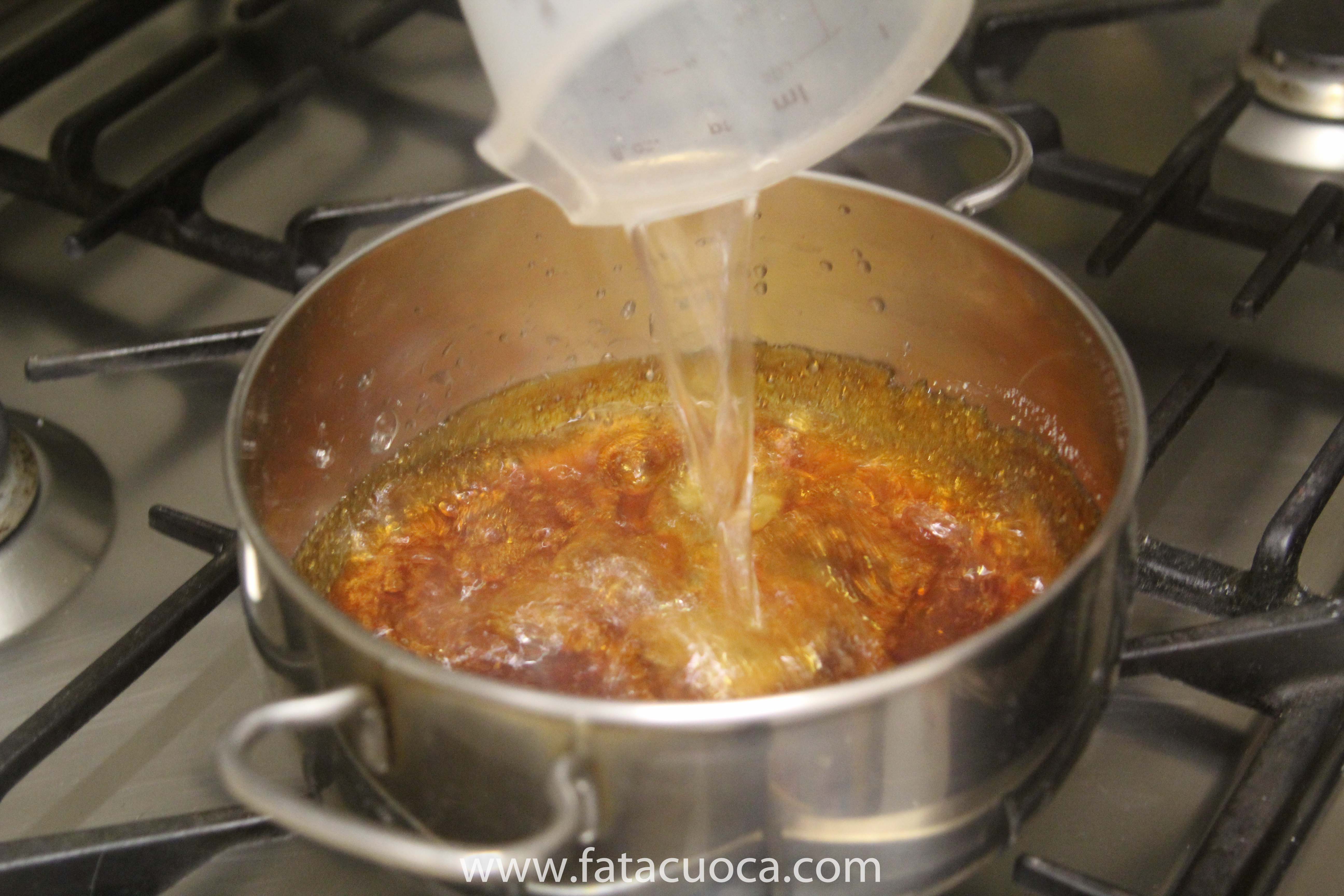 quando è caramellato decuocere aggiungendo l’acqua bollente.