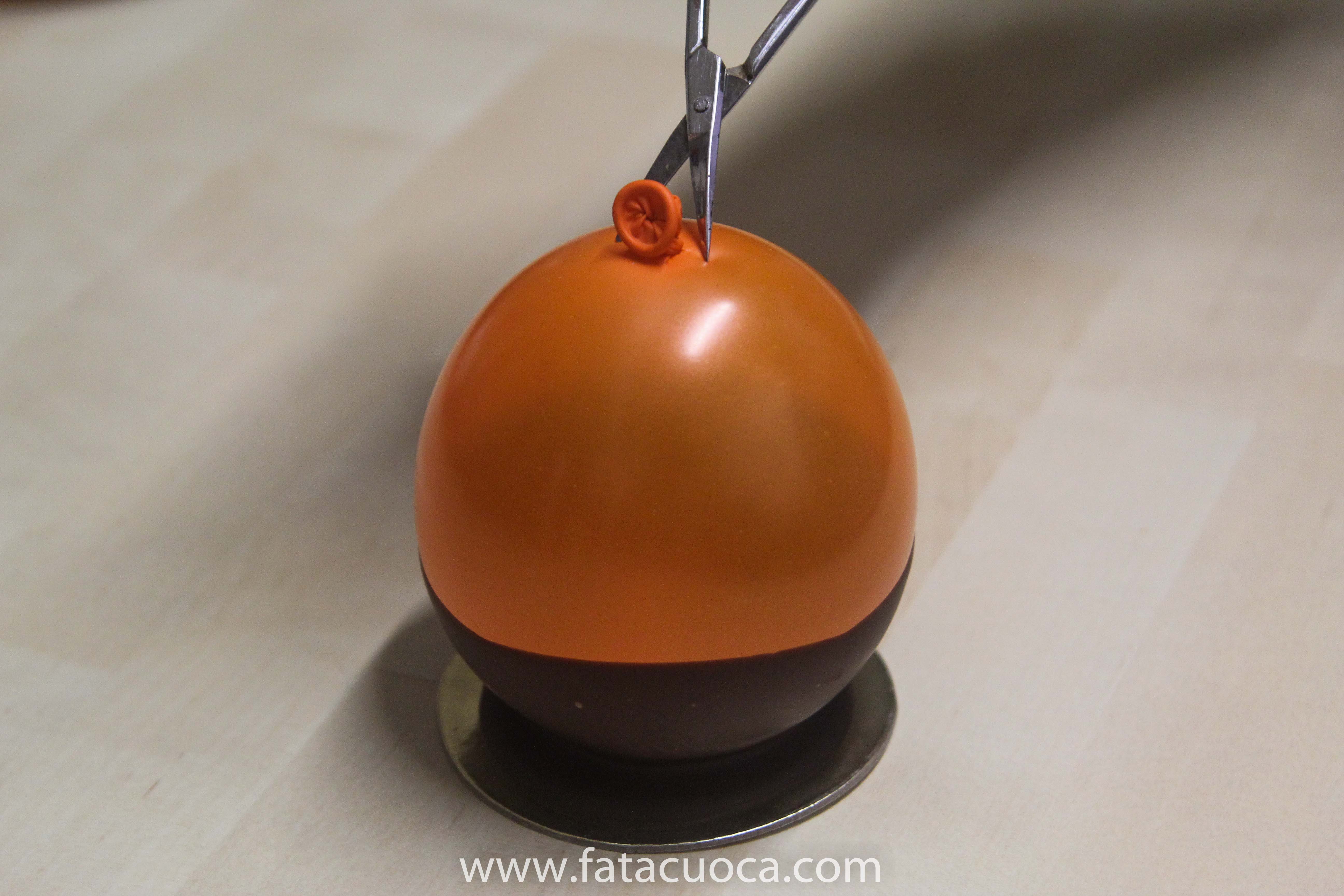 appoggiare il palloncino sulla base e lasciare che il cioccolato si ricristallizzi, potete metterlo anche nel frigorifero