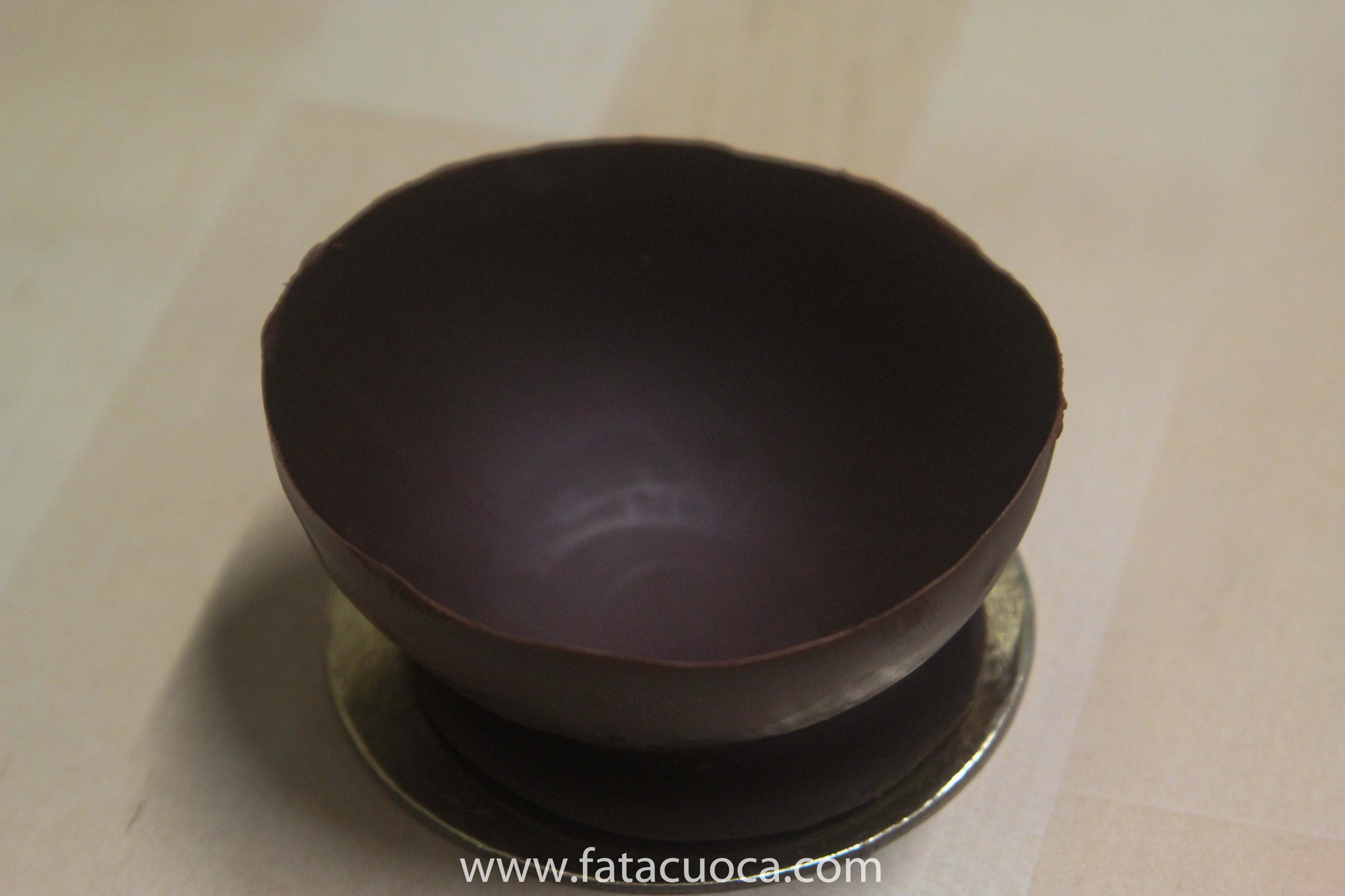 Per realizzare 4 coppette occorrono circa 150 / 200 g di cioccolato  fondente o al latte come preferite 4 palloncini piccoli e 4 piattini.