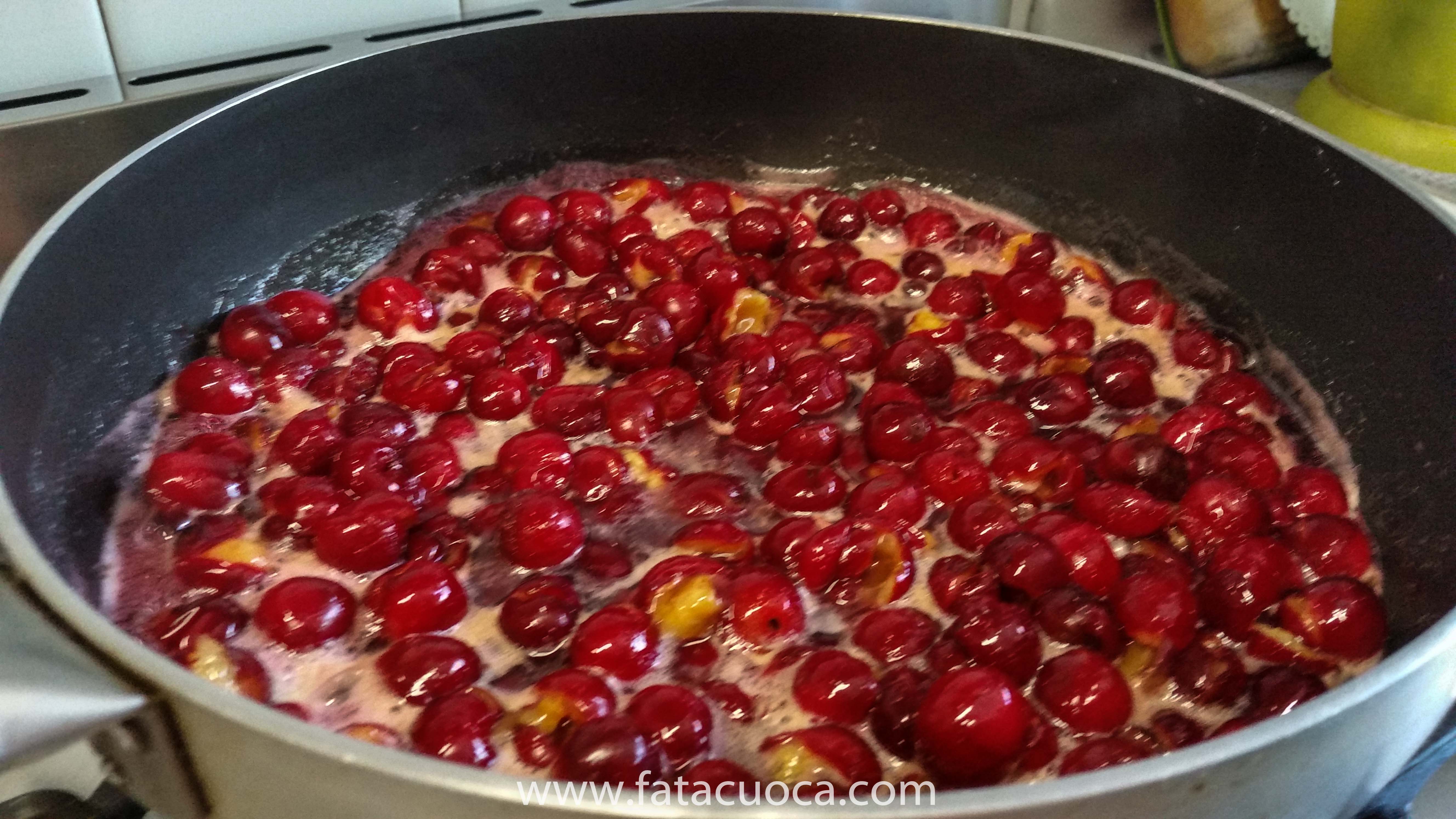 in un tegame antiaderente mettere le amarene con lo zucchero