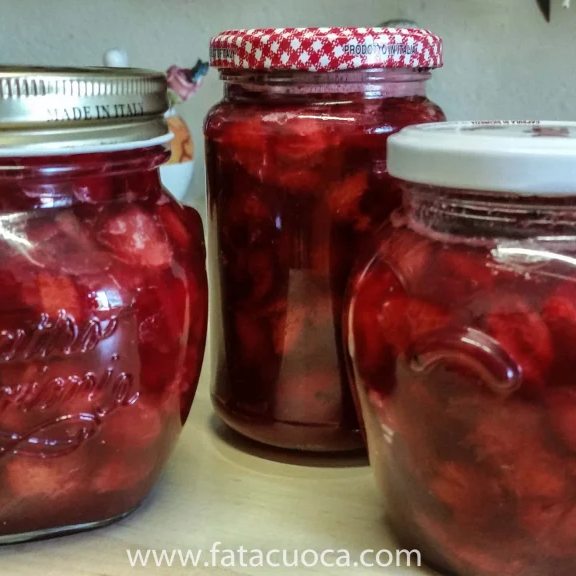 quando l’acqua si è raffreddata asciugare i vasi , assicurarsi che il sottovuoto sia avvenuto capovolgendo i vasi e conservare in un luogo fresco. Con un kg di amarene snocciolate sono riuscita a fare questi 3 vasi