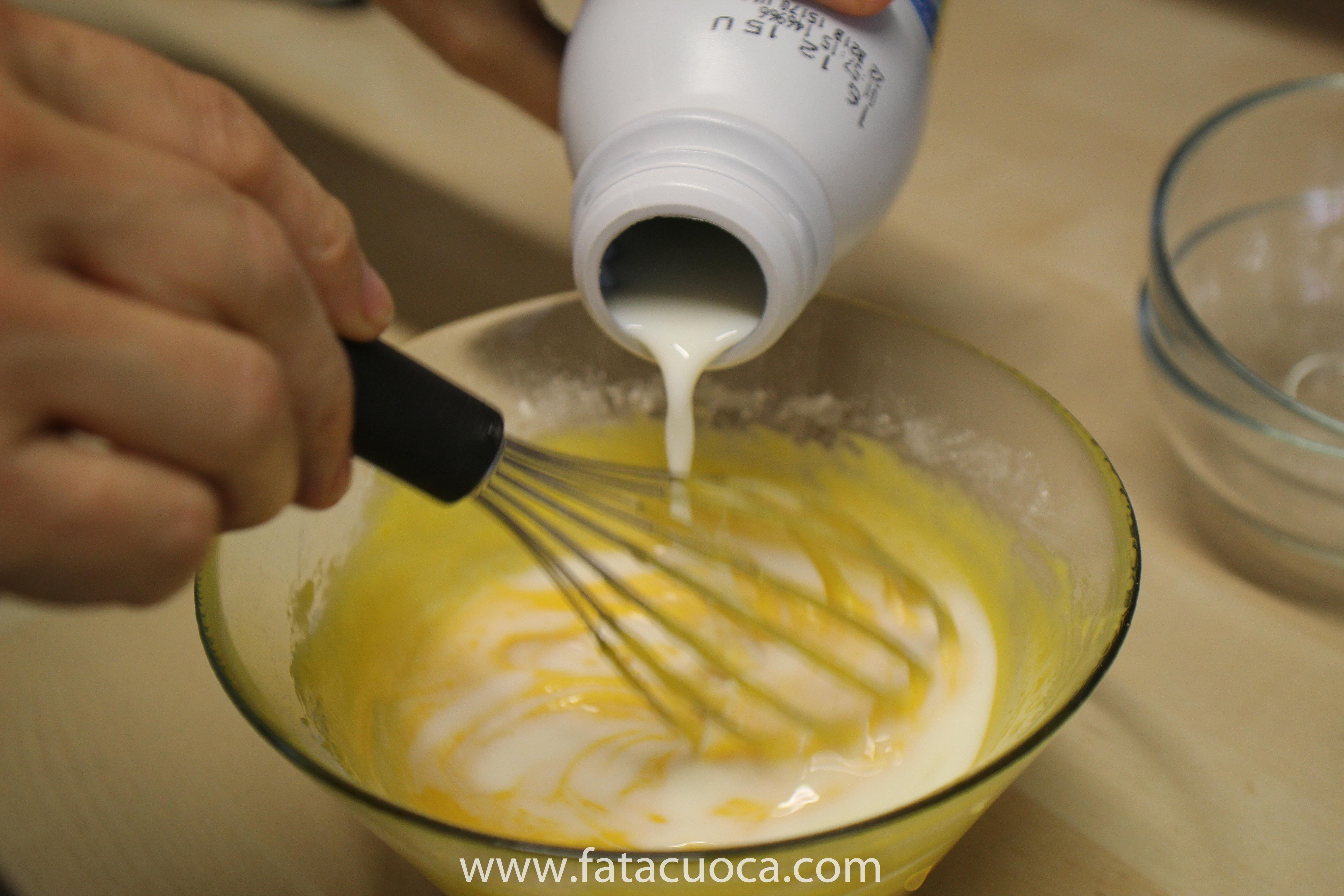 a parte sbattere in una ciotola le uova con lo zucchero