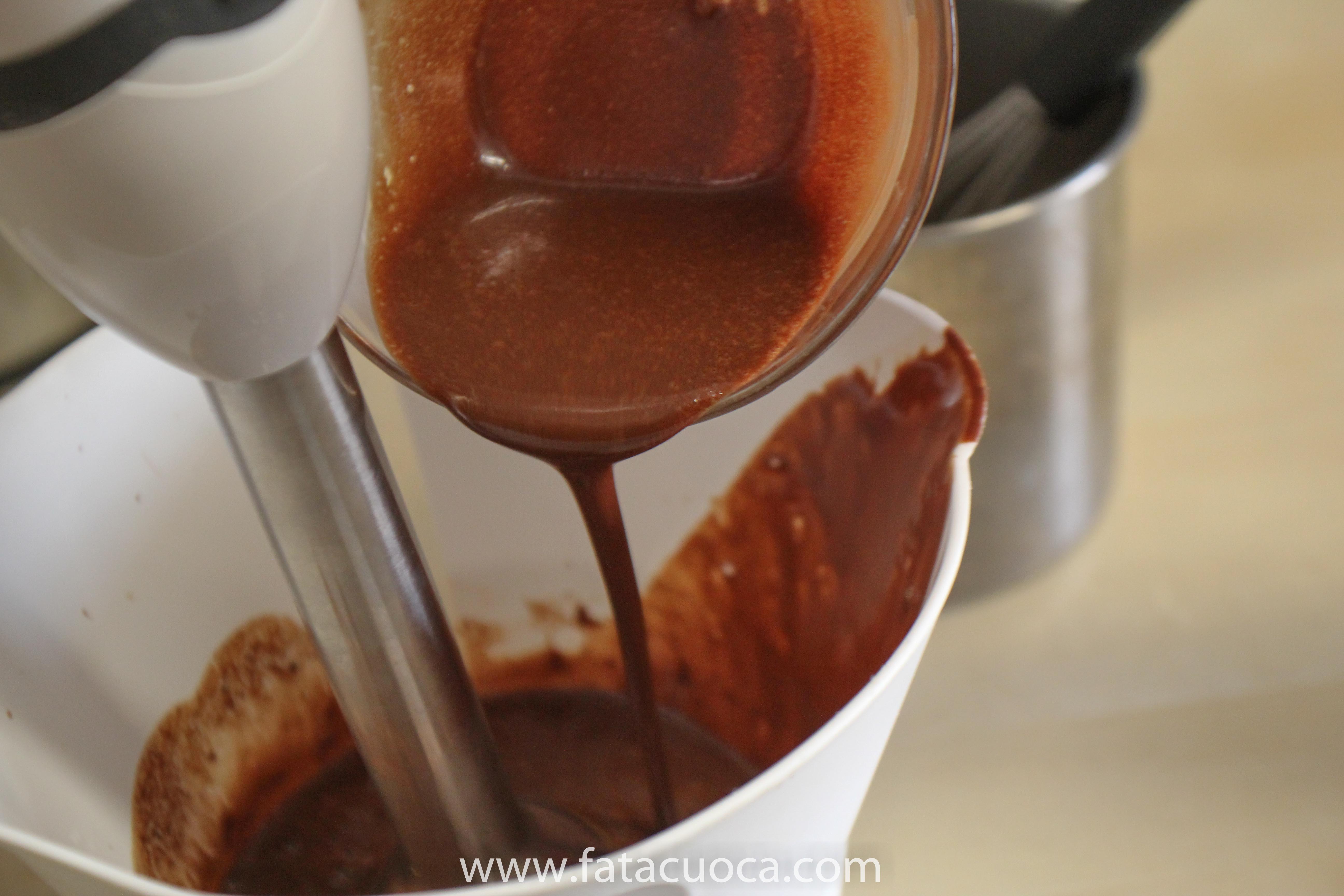 aggiungere l’acqua poco alla volta e mescolare fino a che il cioccolato si sia sciolto