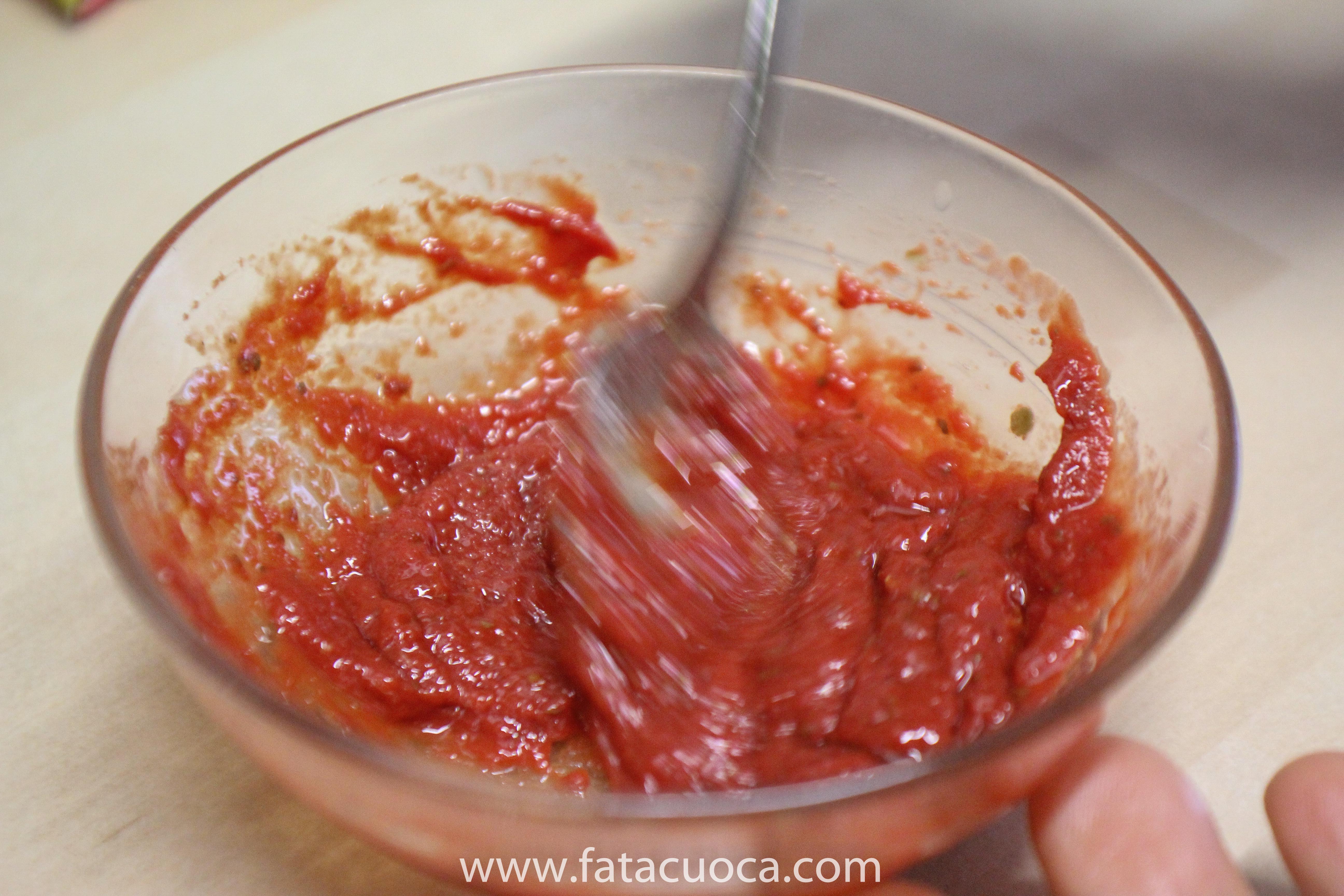 condire il concentrato con acciughe, capperi, origano, olio un cucchiaino e sale