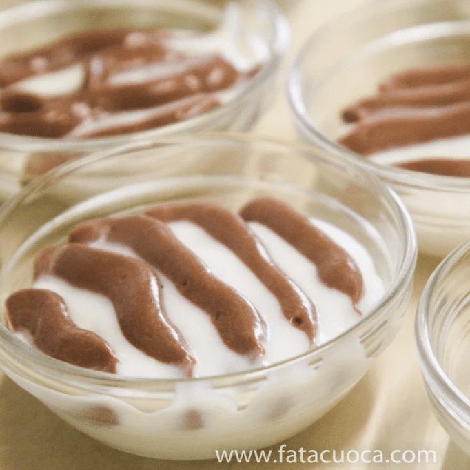 versare la crema bianca nelle ciotoline alternare la crema bianca con quella al cioccolato