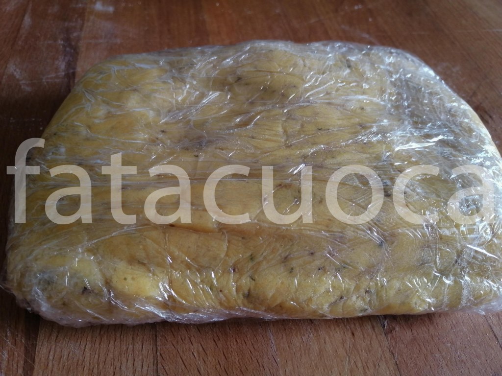 lavorare l’impasto fino a che sia compatto, coprirlo con la pellicola e metterlo in frigorifero per almeno un ora.