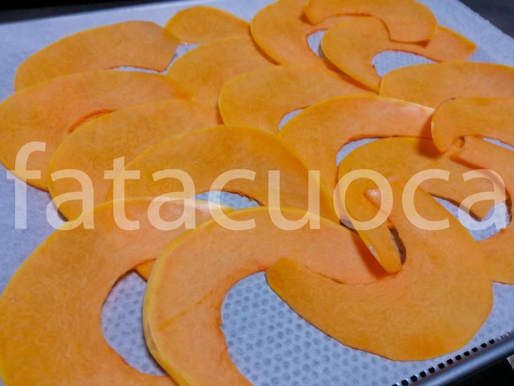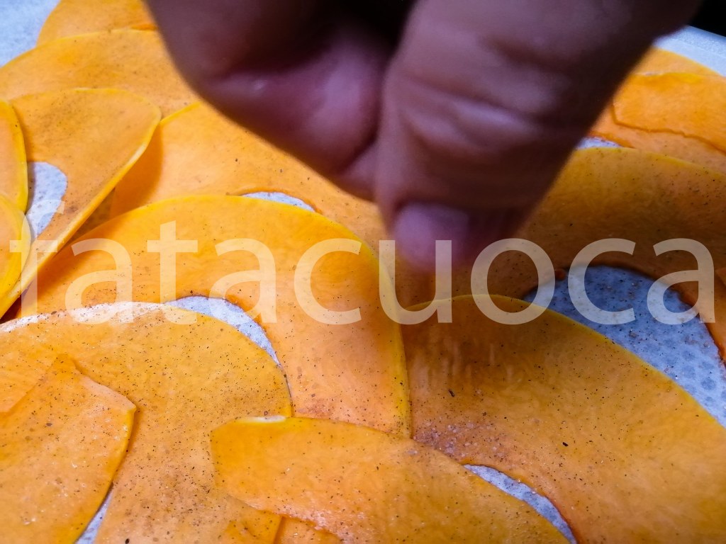 PER LA ZUCCA: zucca tagliata con affettatrice 200g mix di sale fino zucchero di canna cannella e noce moscata.
