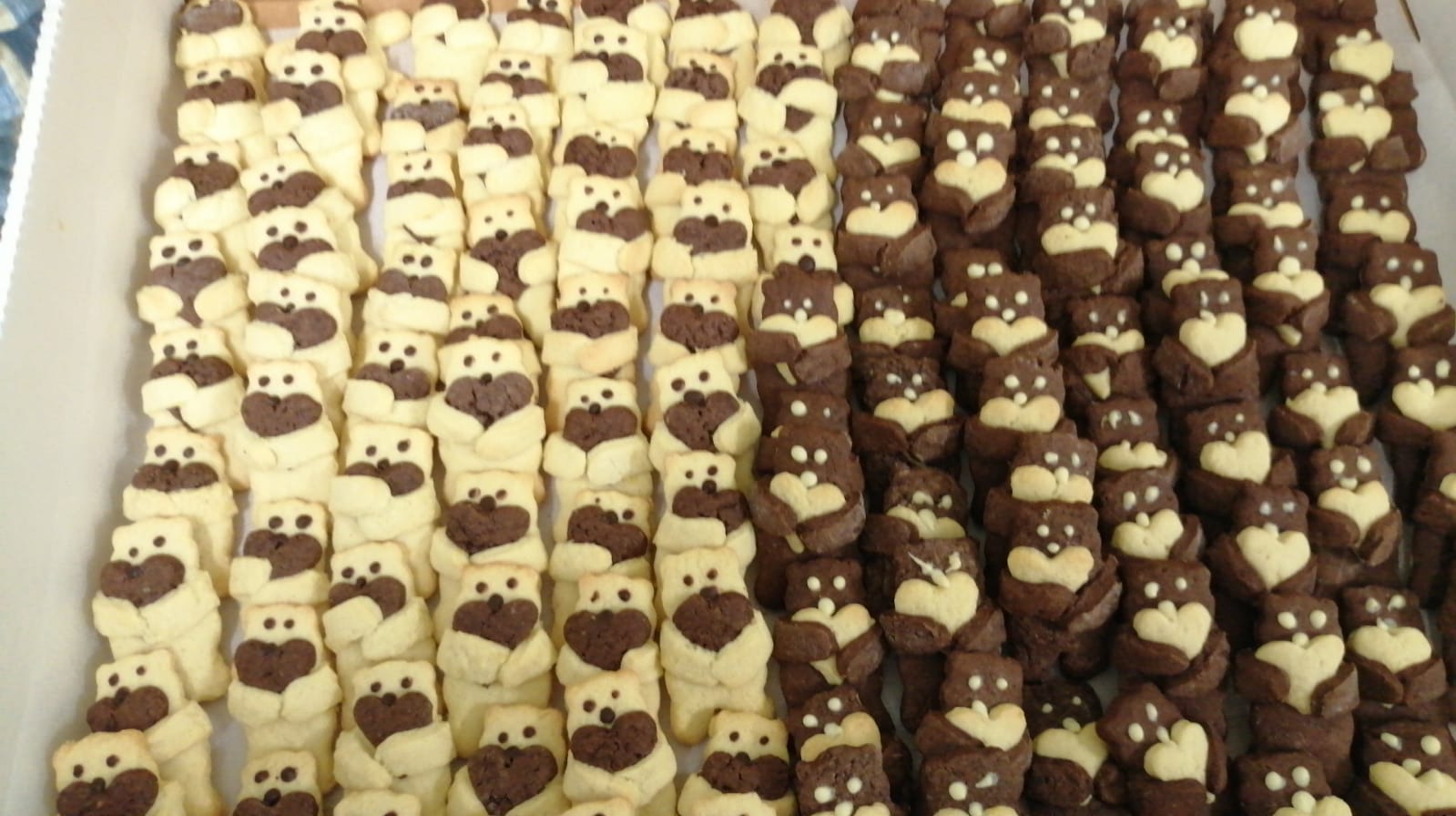 fare prima gli orsetti, poi preparare i cuoricini metterli sugli orsetti e chiudere le braccia. Cuocerli per 10 minuti a 180° . Quando sono ben raffreddati decorarli con cioccolato bianco o fondente a seconda del proprio gusto.