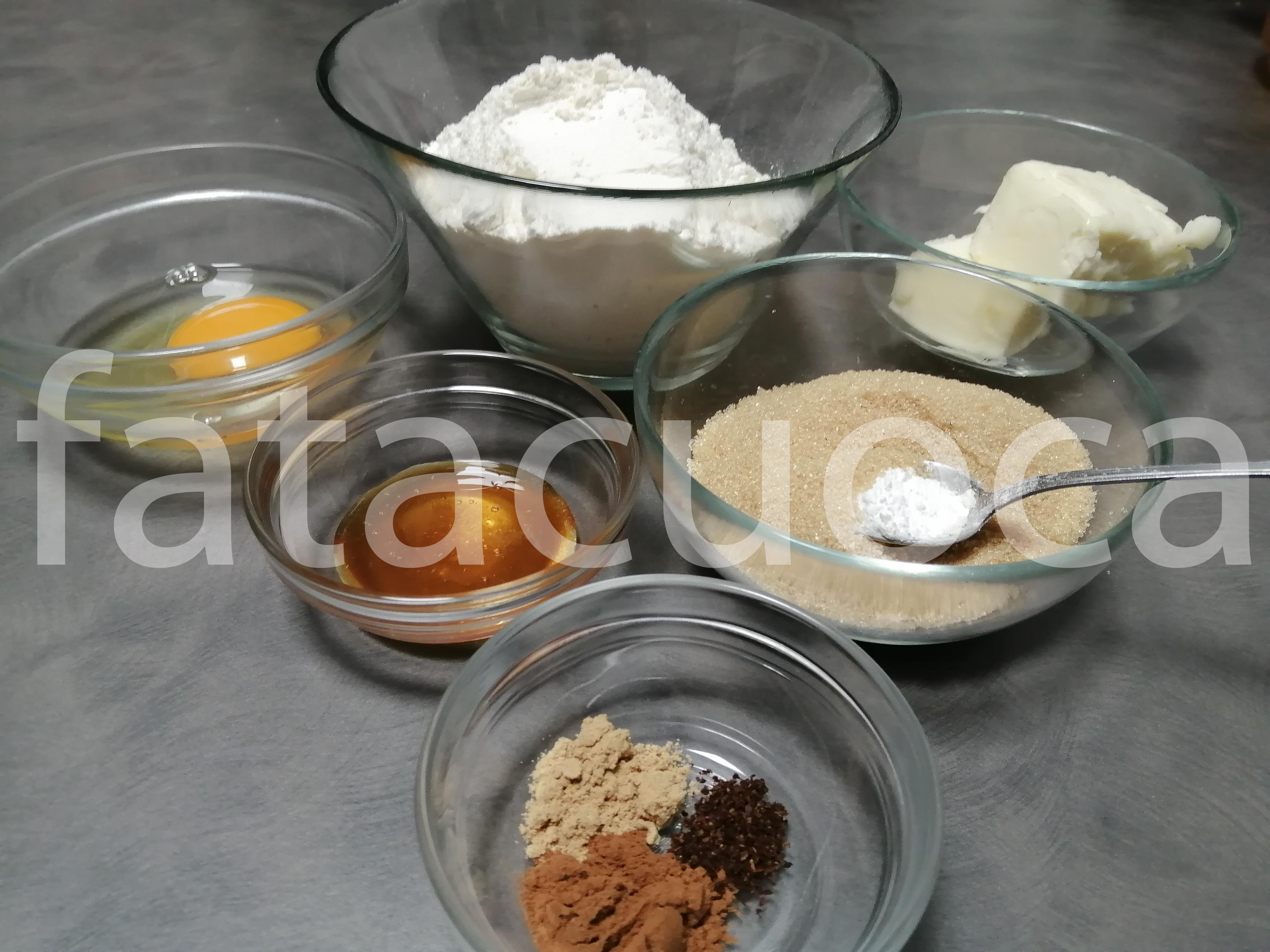 Procedimento: in una ciotola o in un robot da cucina mettere: farina e sabbiarla con il burro aggiungere lo zucchero, il lievito e le spezie spezie e mescolare tutto insieme formando un panetto. coprirlo con pellicola e lasciarlo riposare in frigorifero mezz’ora.