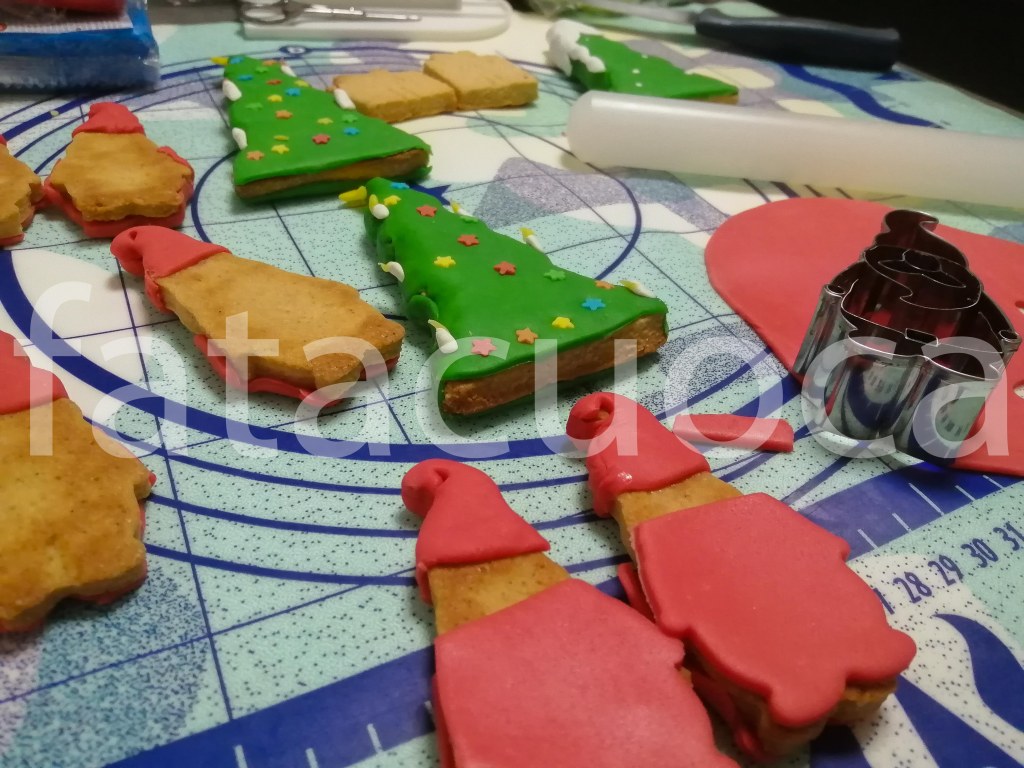 Per fare le formine passare lo stampino nella farina poi ritagliare la pasta e cuocerle in forno statico a 170° per 15 minuti. Quando i biscotti sono raffreddati decorarli a piacere, io ho usato la pasta di zucchero.
