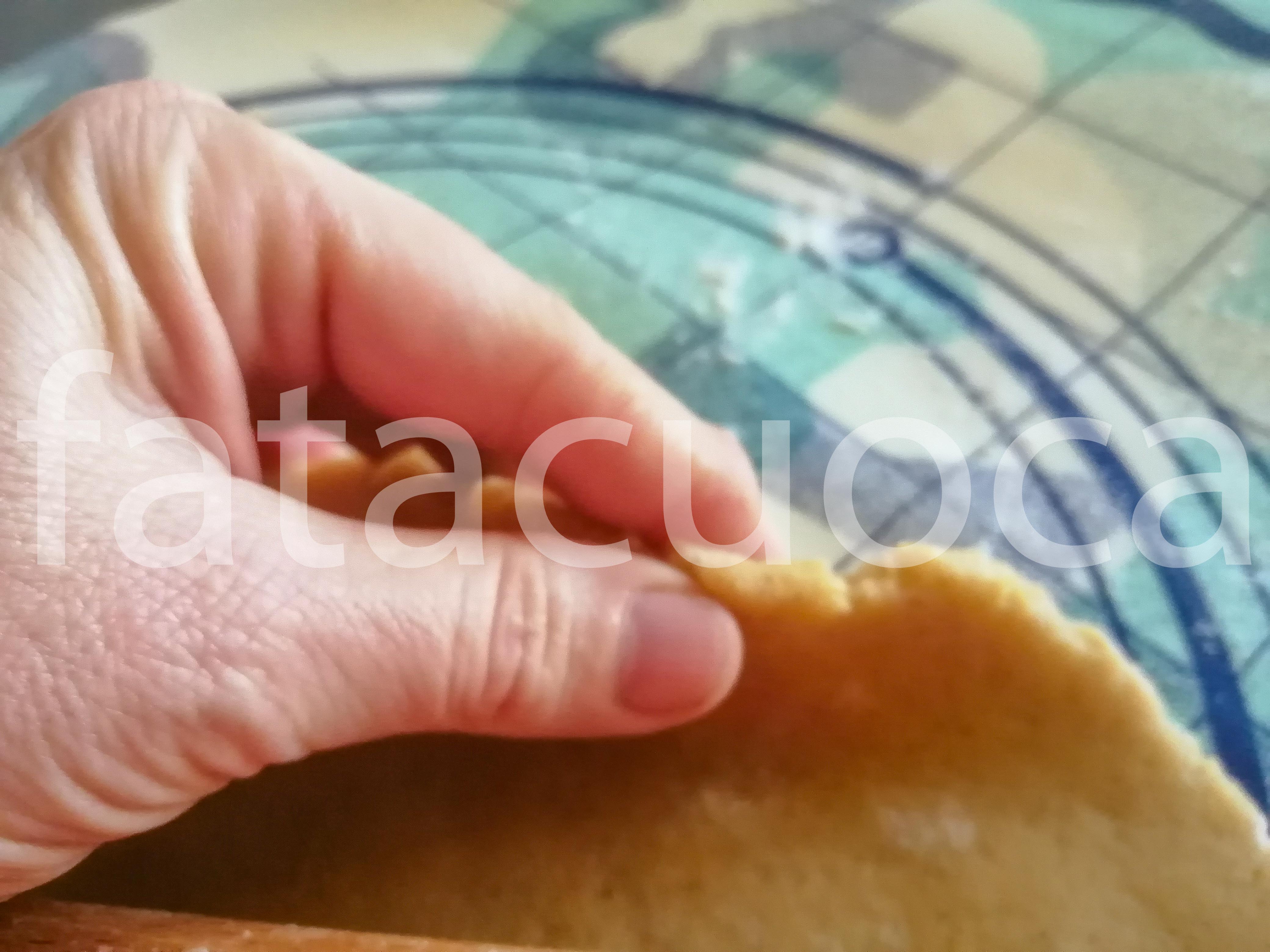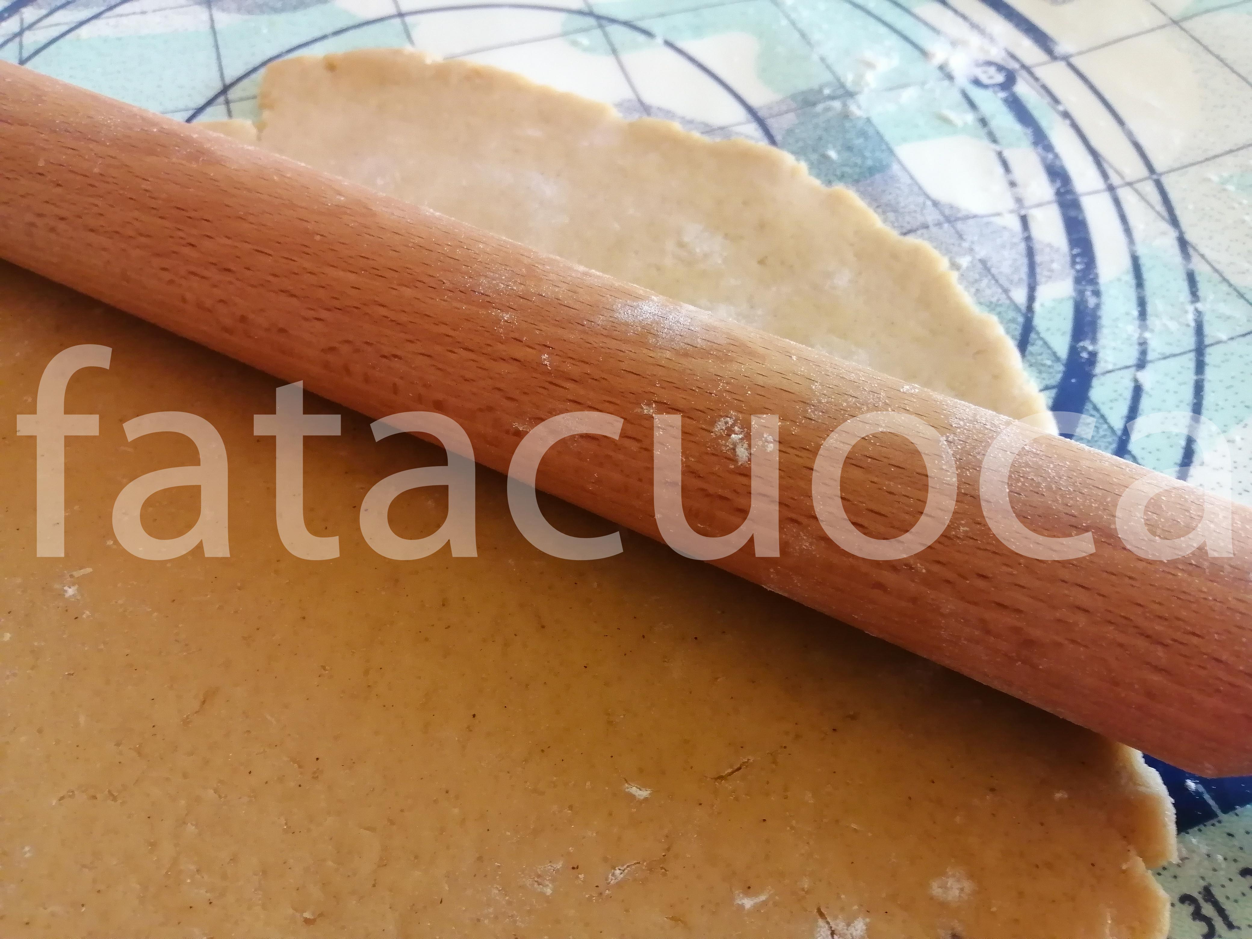 Stendere la pasta con il mattarello aiutandosi con un po’ di farina dello spessore di circa 5 mm UTILISSIMO METTERE L’IMPASTO TIRATO SU UN FOGLIO DI CARTA FORNO IN FRIGORIFERO