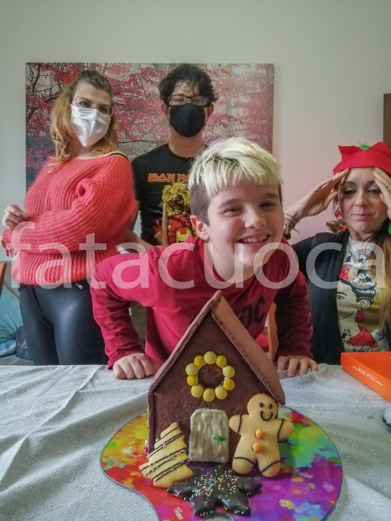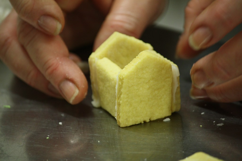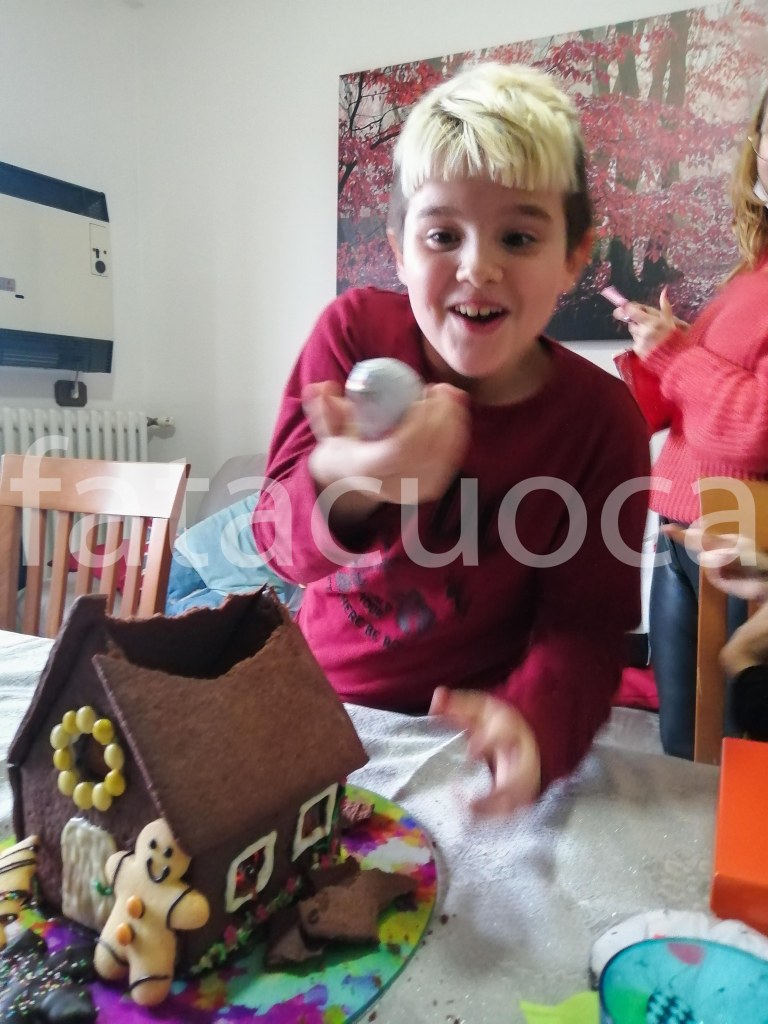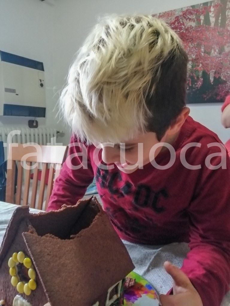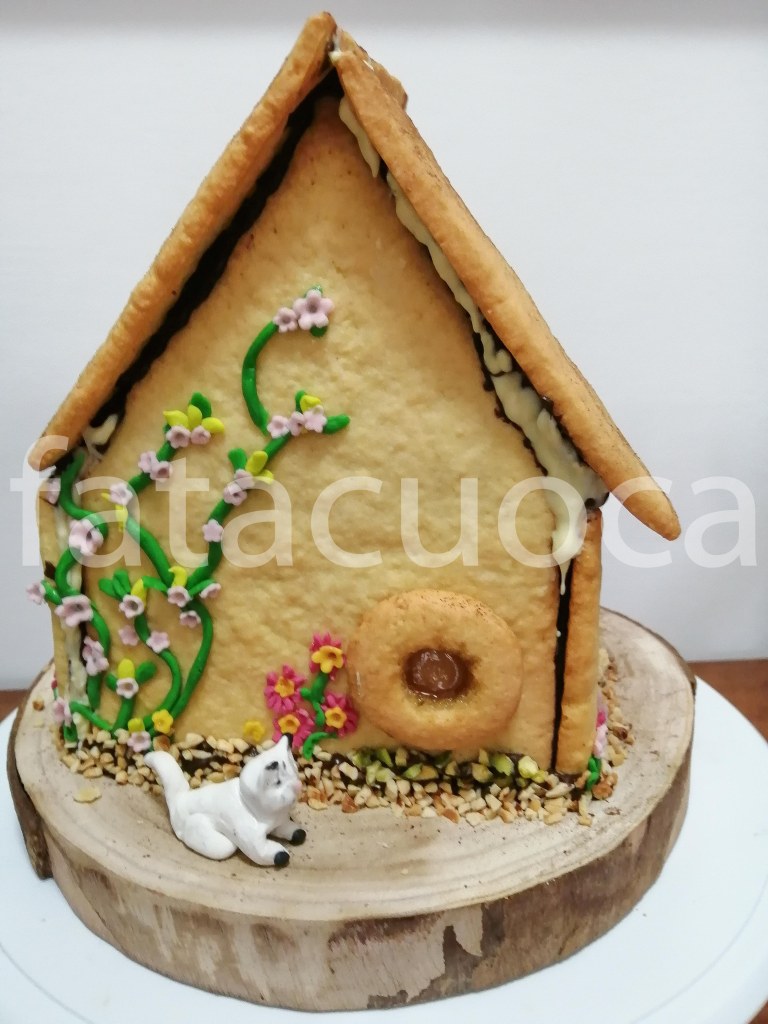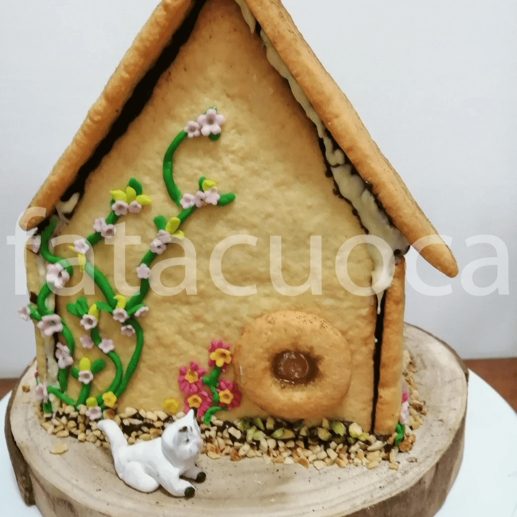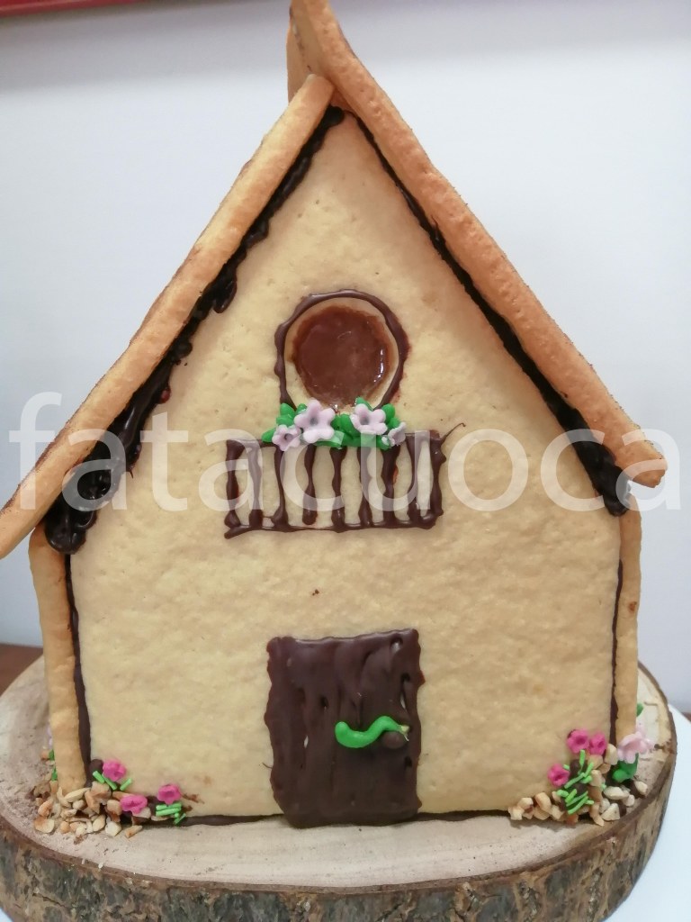Purtroppo non ho fotografato la cottura ma per capire meglio la costruzione della casetta ho trovato foto di un corso fatto qualche anno fa, per costruirla avevo usato la ghiaccia ma si possono usare anche cioccolato bianco e fonfente.