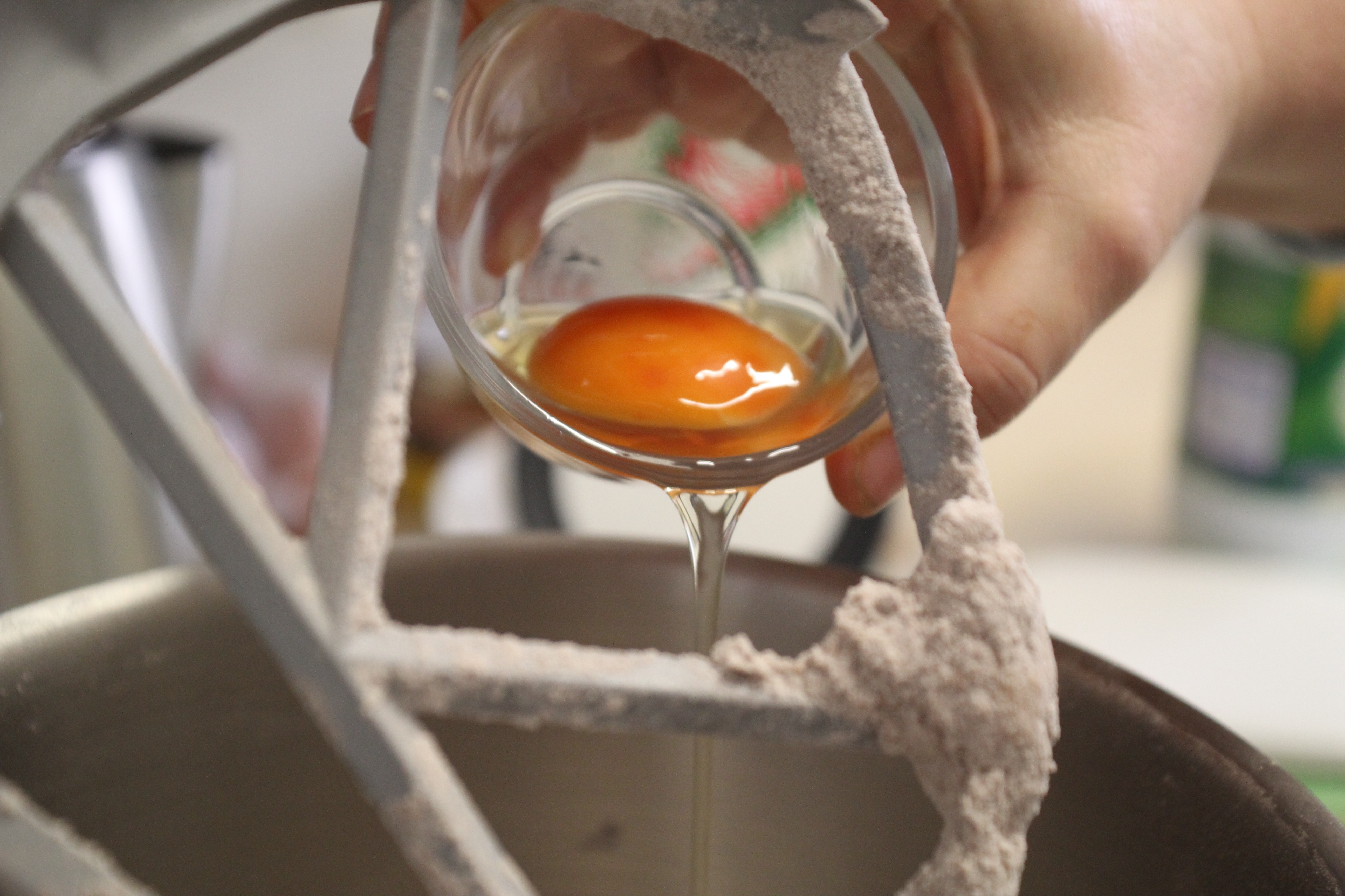 Procedimento: mescolare la parte secca (farina, zucchero, scorza di limone e vaniglia) aggiungere il burro e sabbiare poi aggiungere le uova e mescolare velocemente per non scaldare troppo l’impasto.