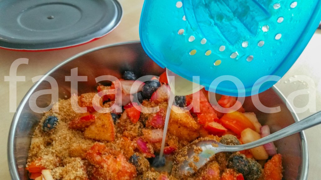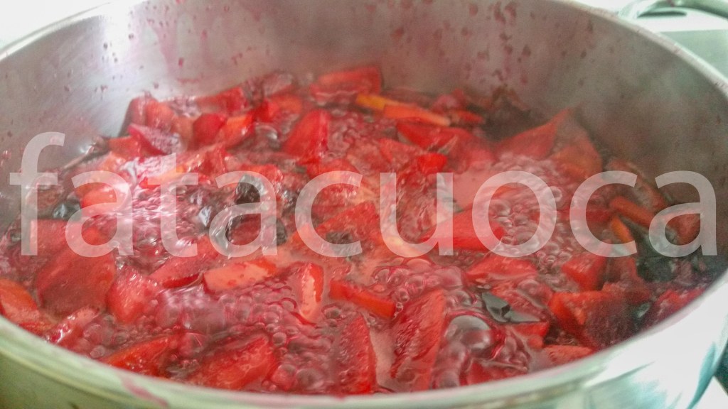 Mettere sul fuoco aggiungendo gli altri 100 g di zucchero di canna e il succo del lime e cuocere a fuoco lento per circa un ora fino a che assomiglia a una confettura.