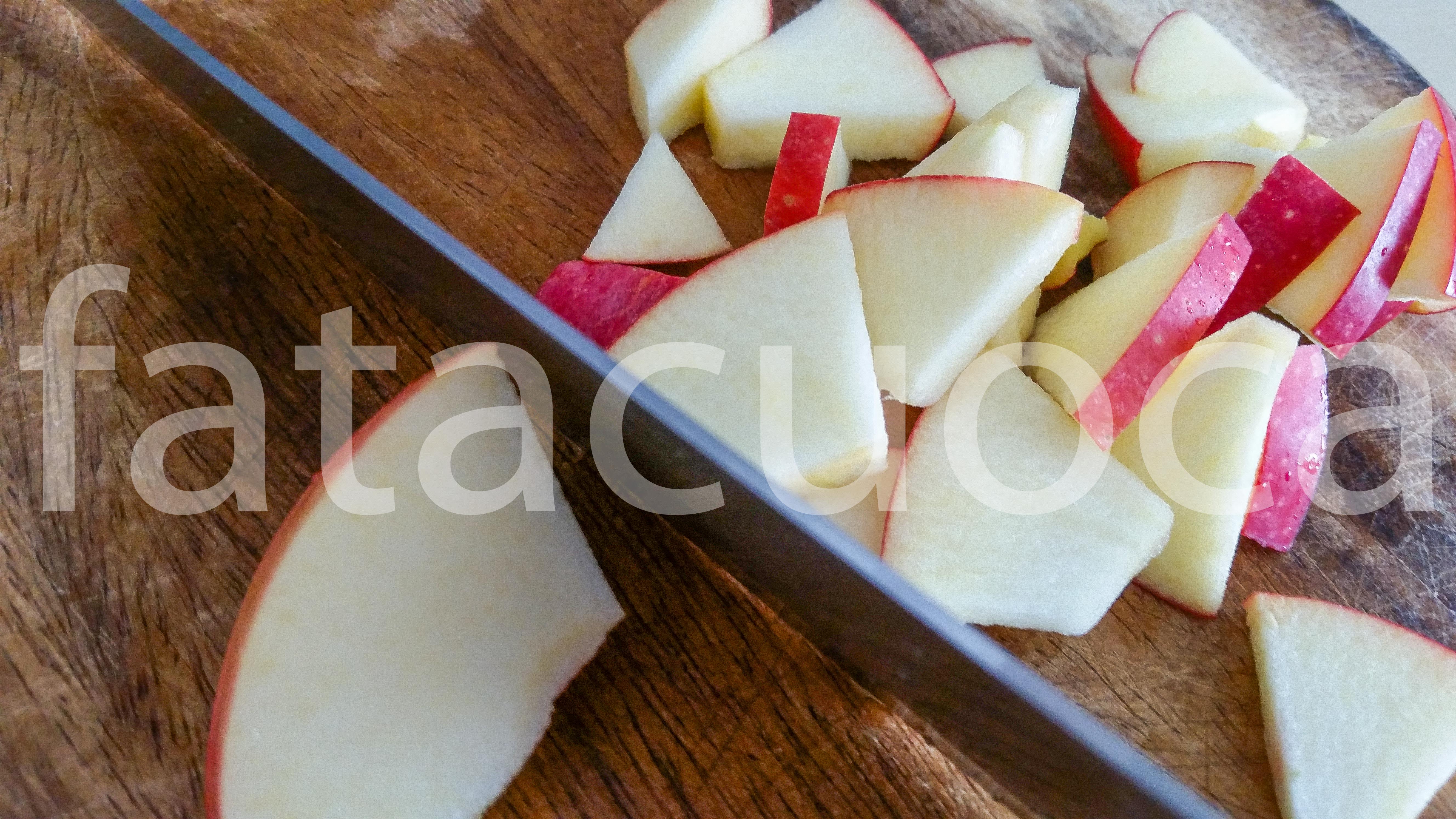 Tagliare cipolla ,mela, pomodoro in pezzi grossolani