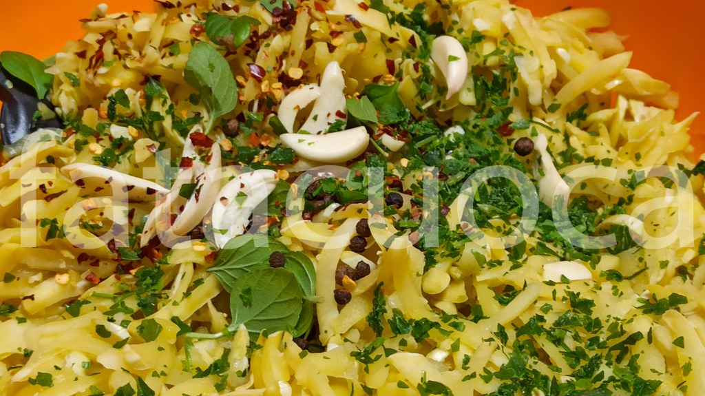 - prezzemolo, aglio, qualche grano di pepe e un po’ di peperoncino foglioline di menta